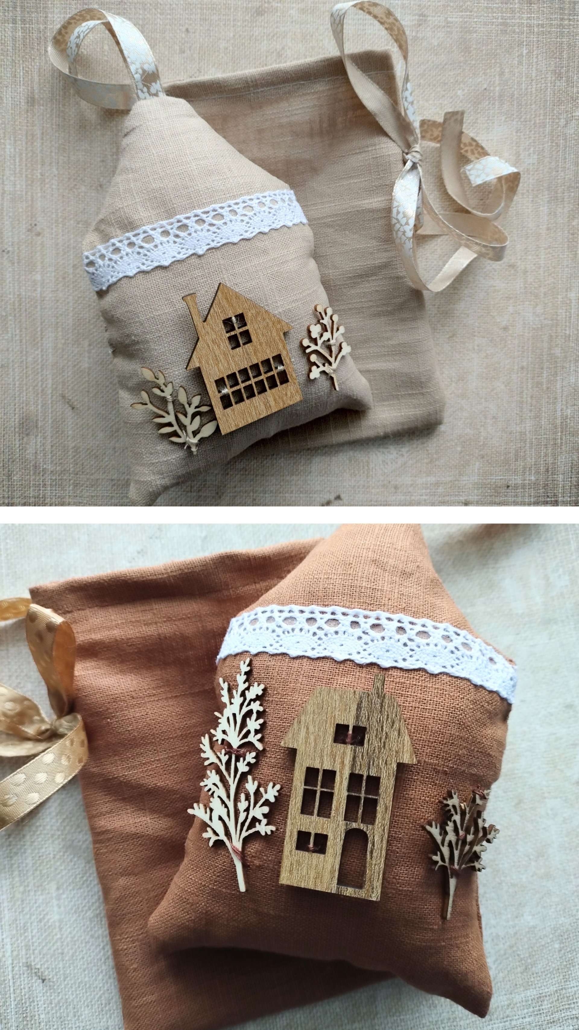 wykonany ręcznie z bardzo dobrych materiałów: len i drewno