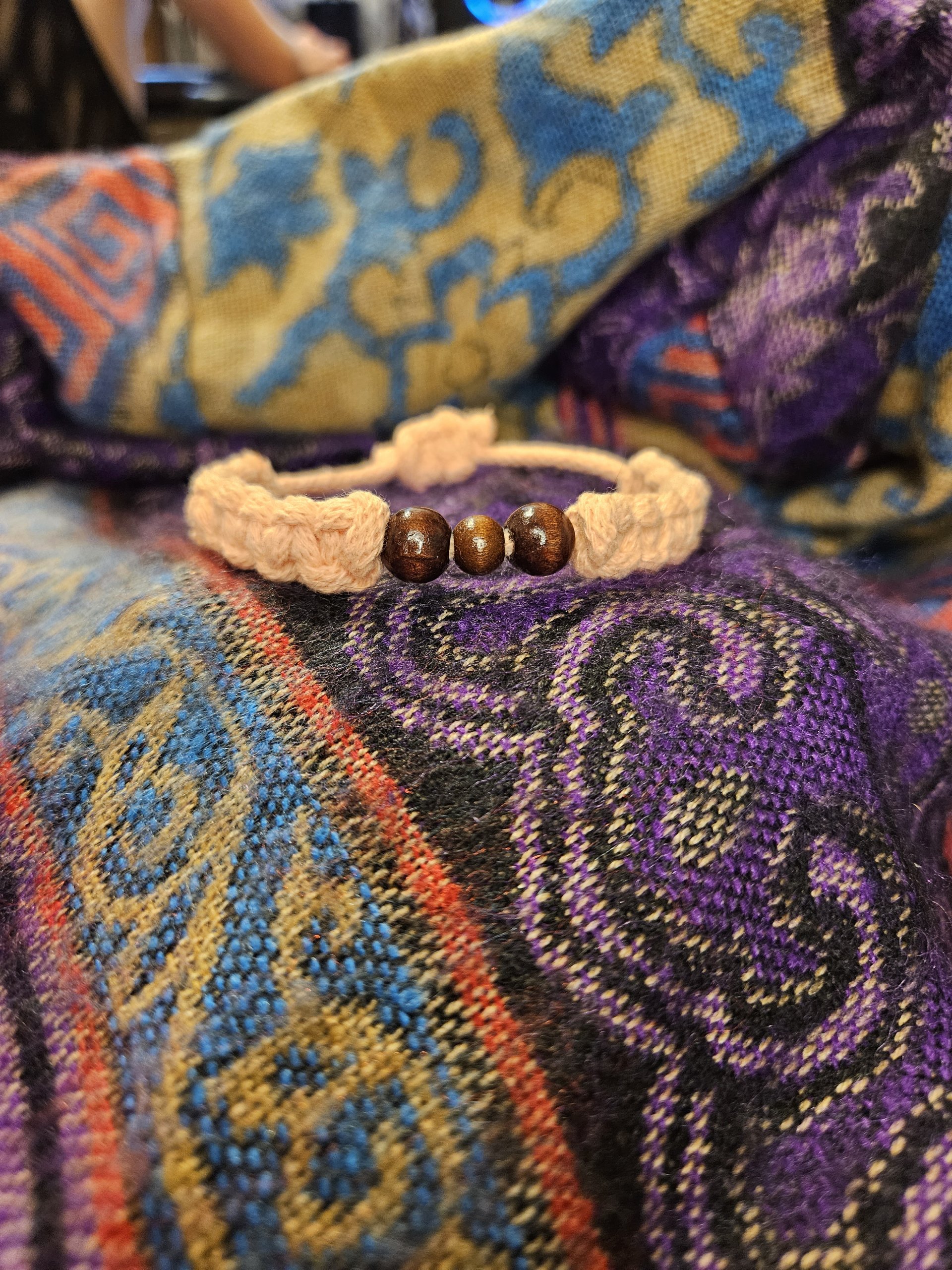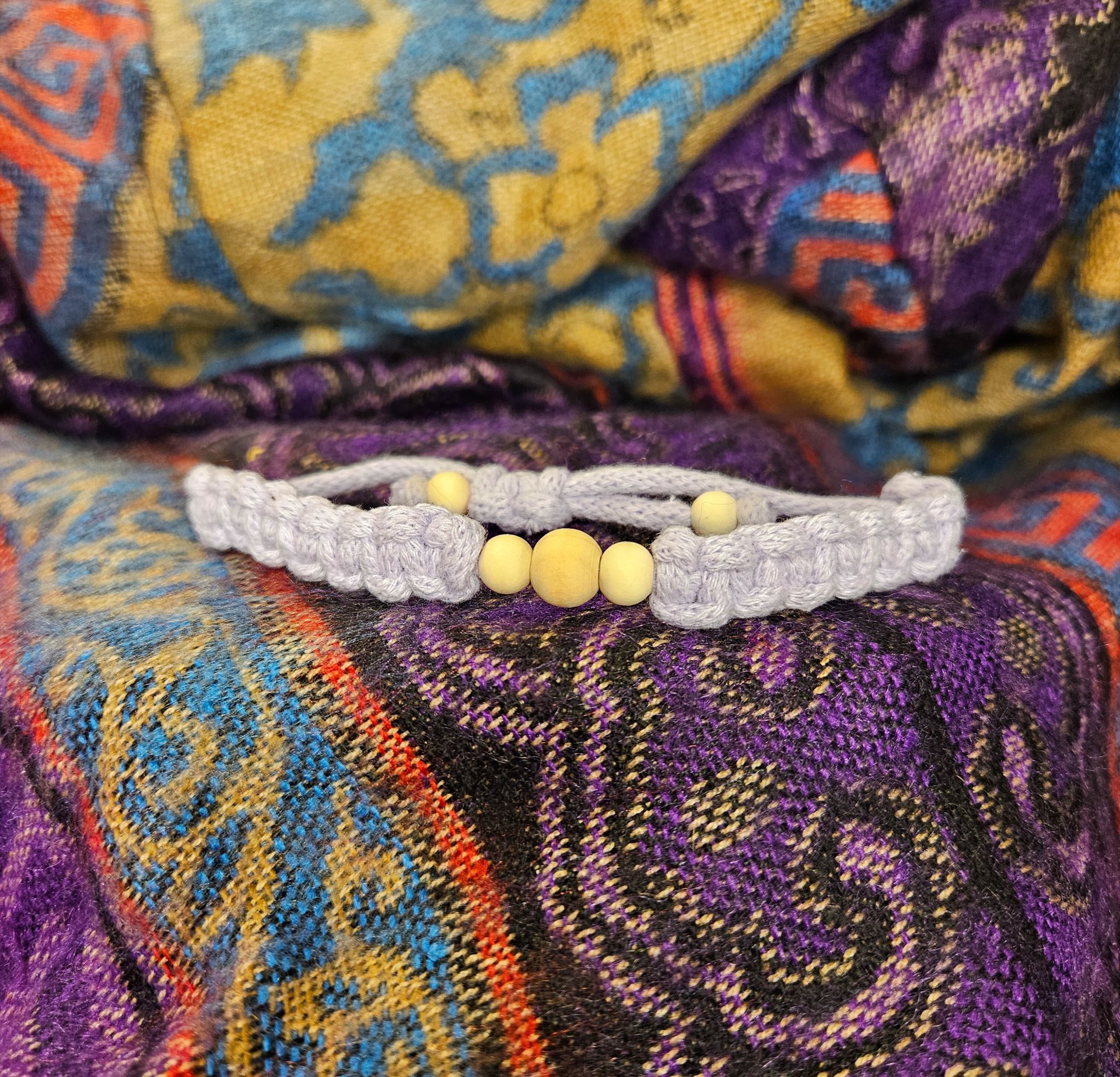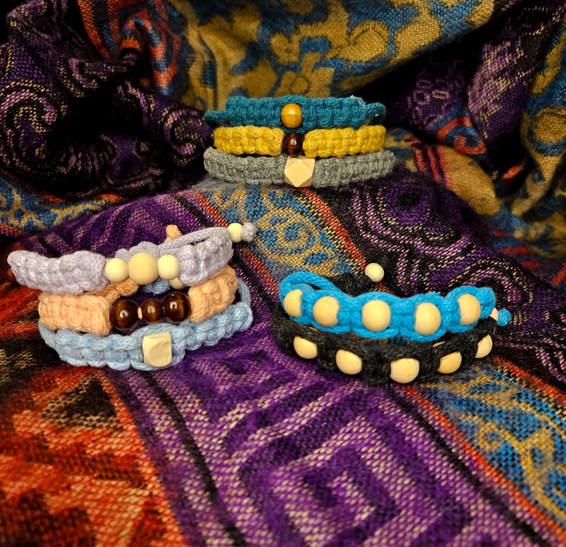Różnokolorowe ręcznie wykonane bransoletki z delikatnego sznurka.