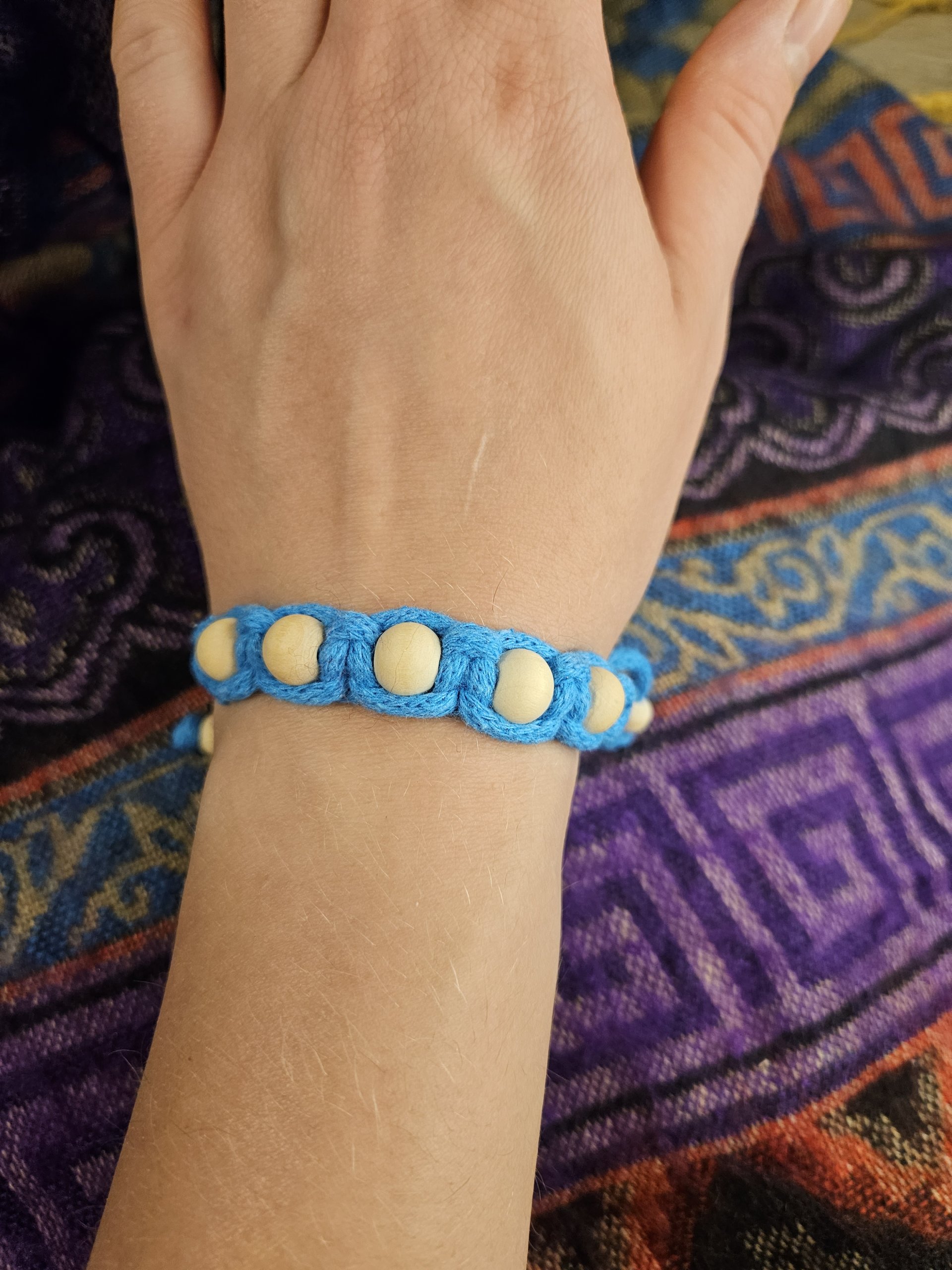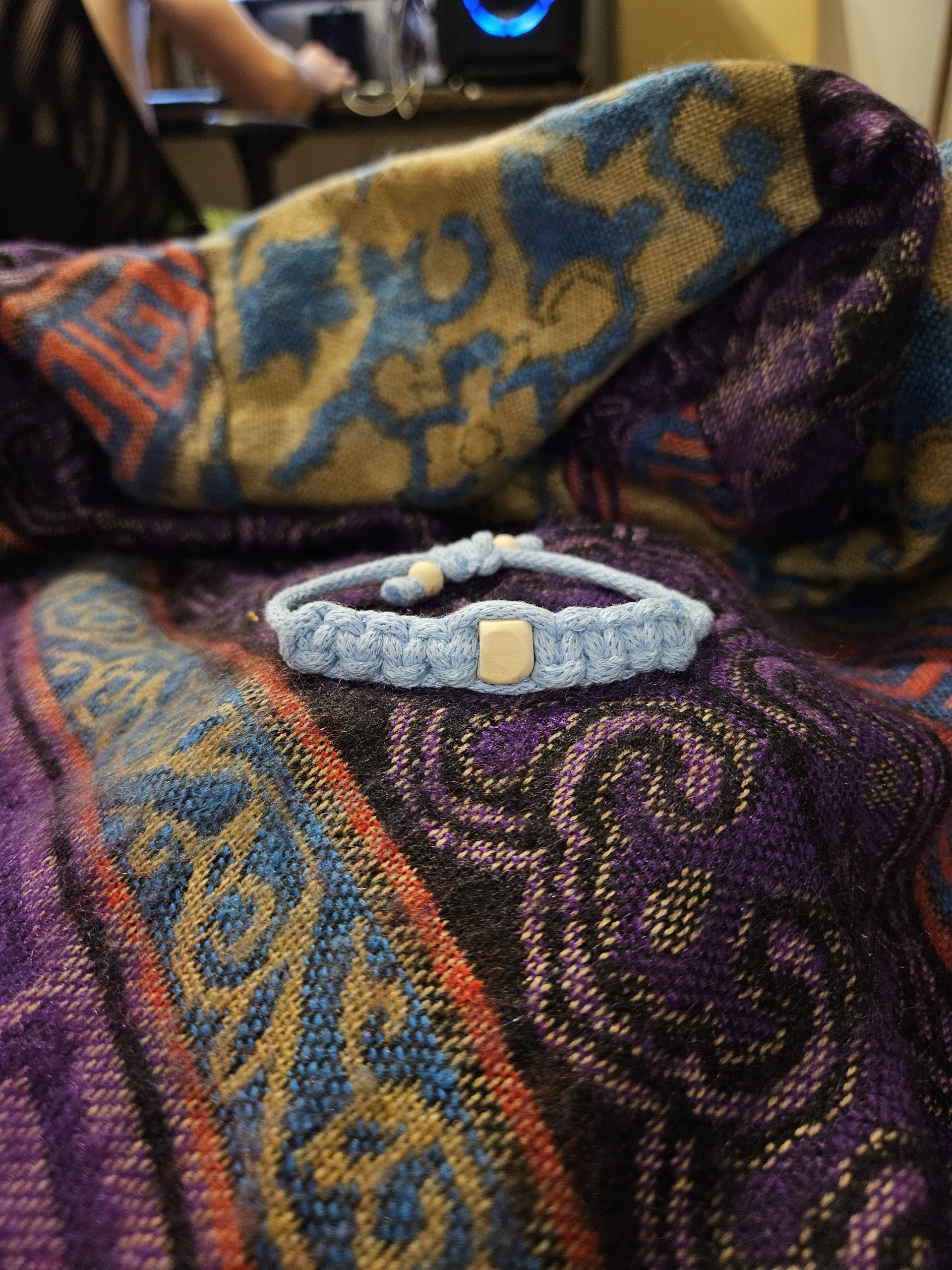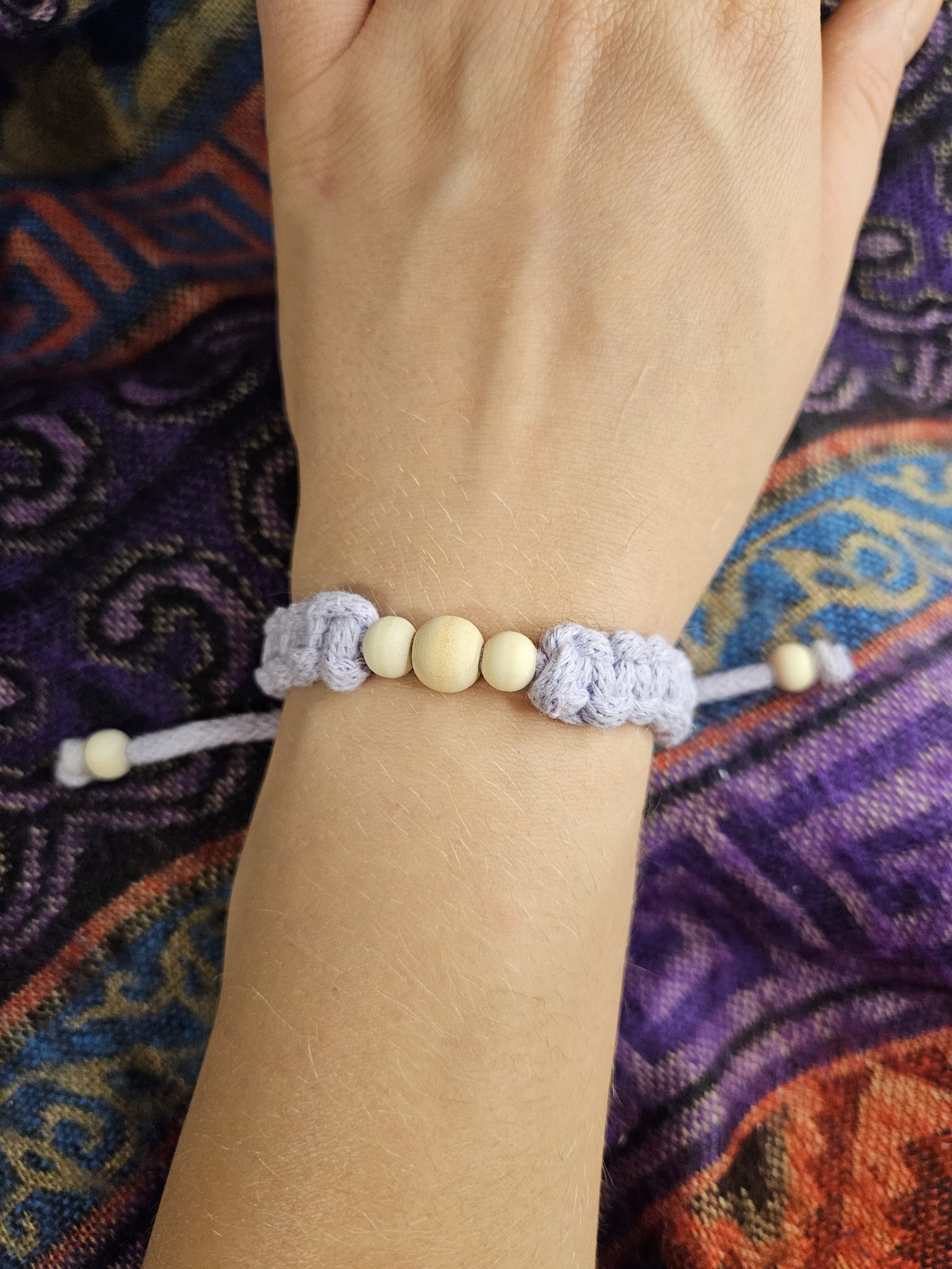Różnokolorowe ręcznie wykonane bransoletki z delikatnego sznurka.