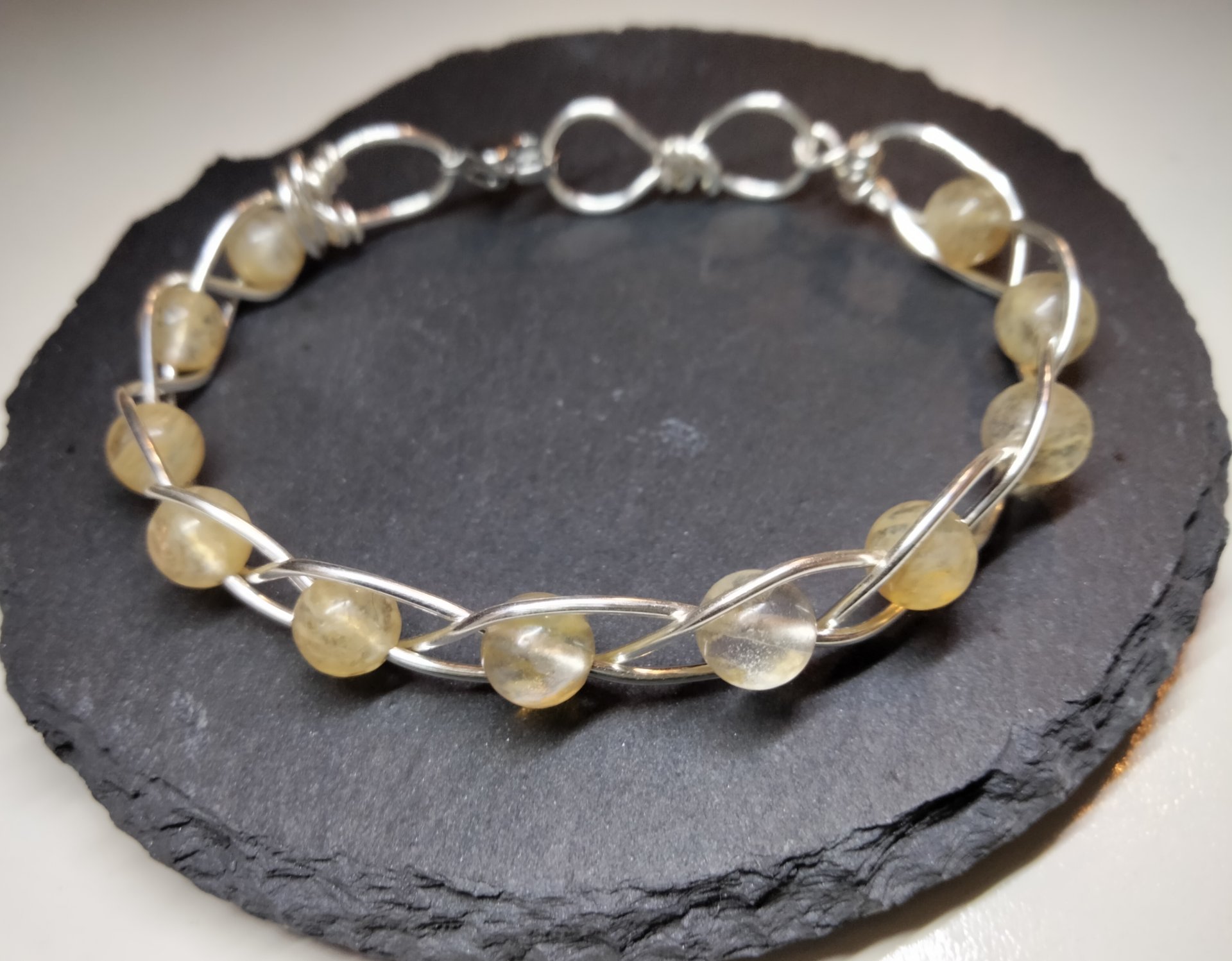 Przedstawiam Wam unikatową bransoletkę z cytrynem, całkowicie wykonaną ręcznie metodą wire wrapping z drutu miedzianego posrebrzanego srebrem próby 925.