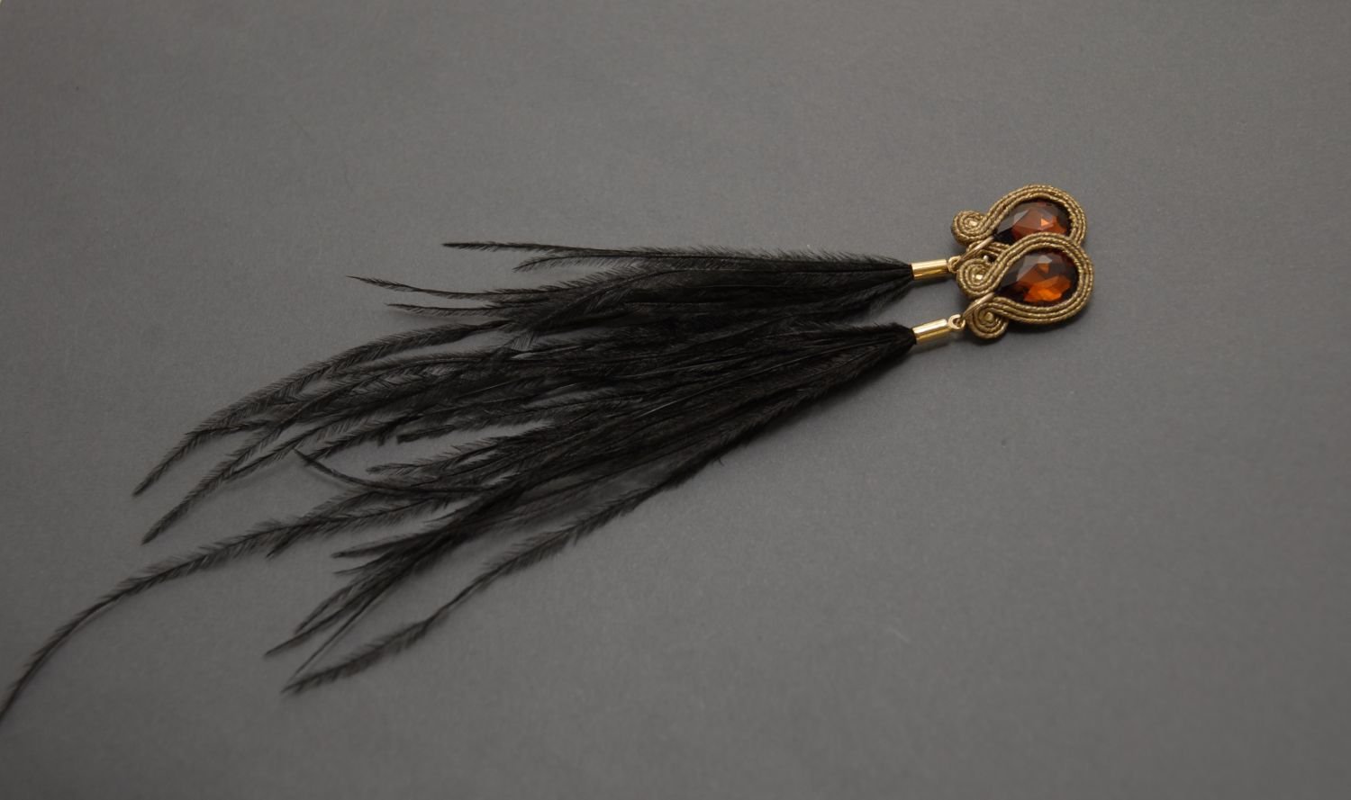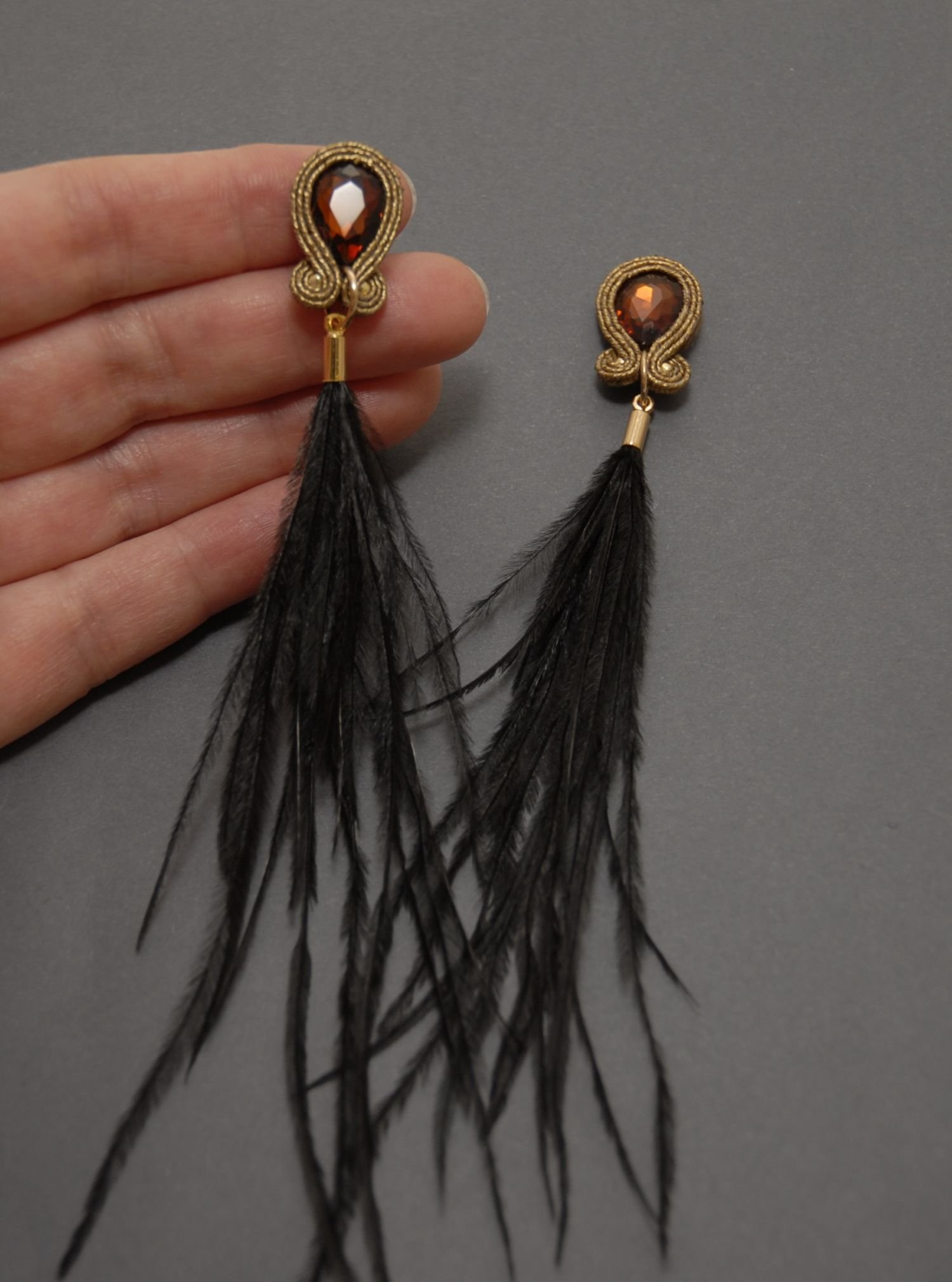 brązowo-czarne kolczyki lub klipsy sutasz z piórami