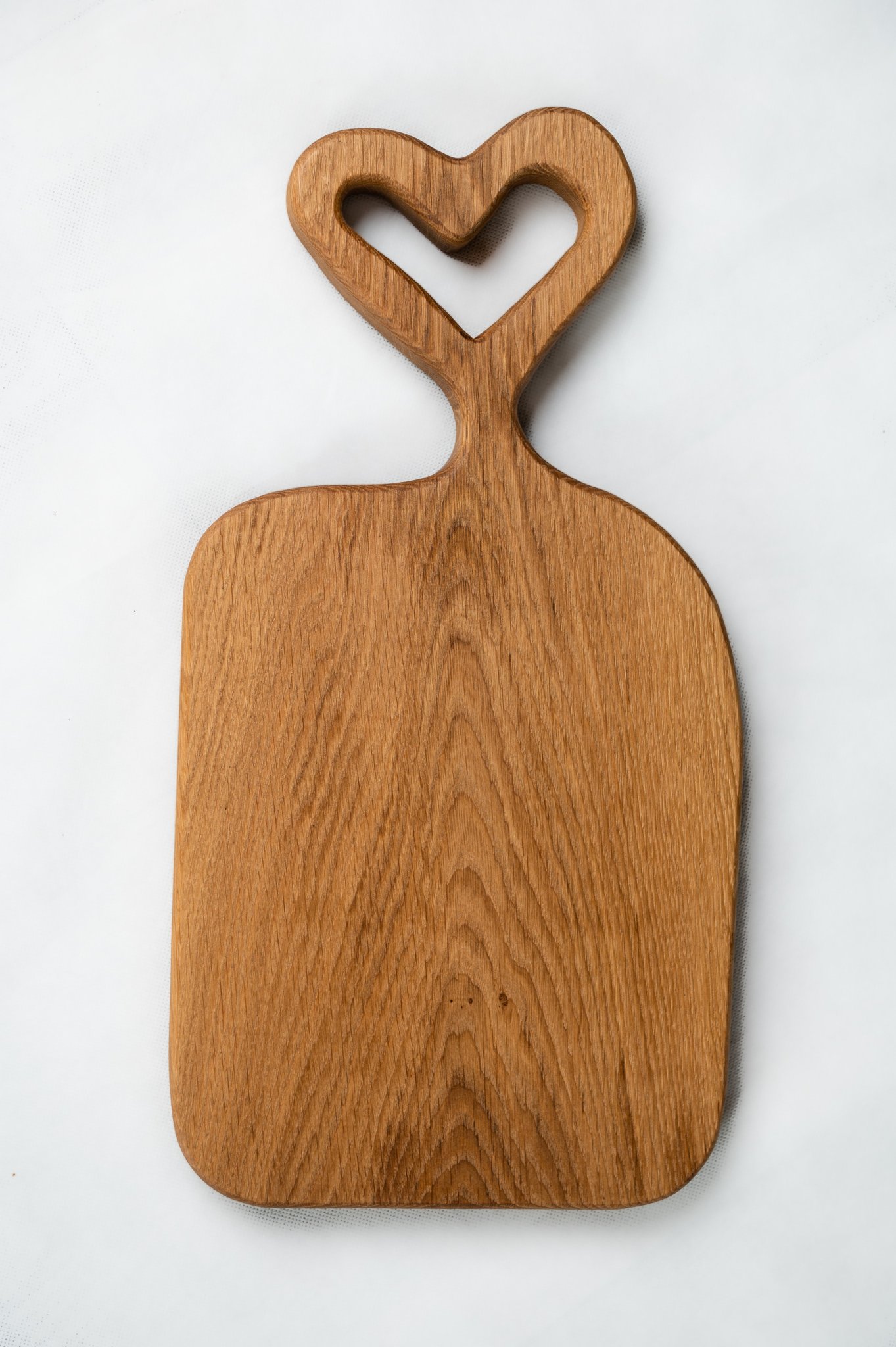 Elegancka deska do serwowania wykonana z naturalnego drewna dębowego. Wyposażona w wygodną rączkę w kształcie serca, łączy funkcjonalność z dekoracyjnym wyglądem. Idealna do serów, wędlin, przekąsek czy pieczywa, a jednocześnie stanowi stylowy element nakrycia stołu.