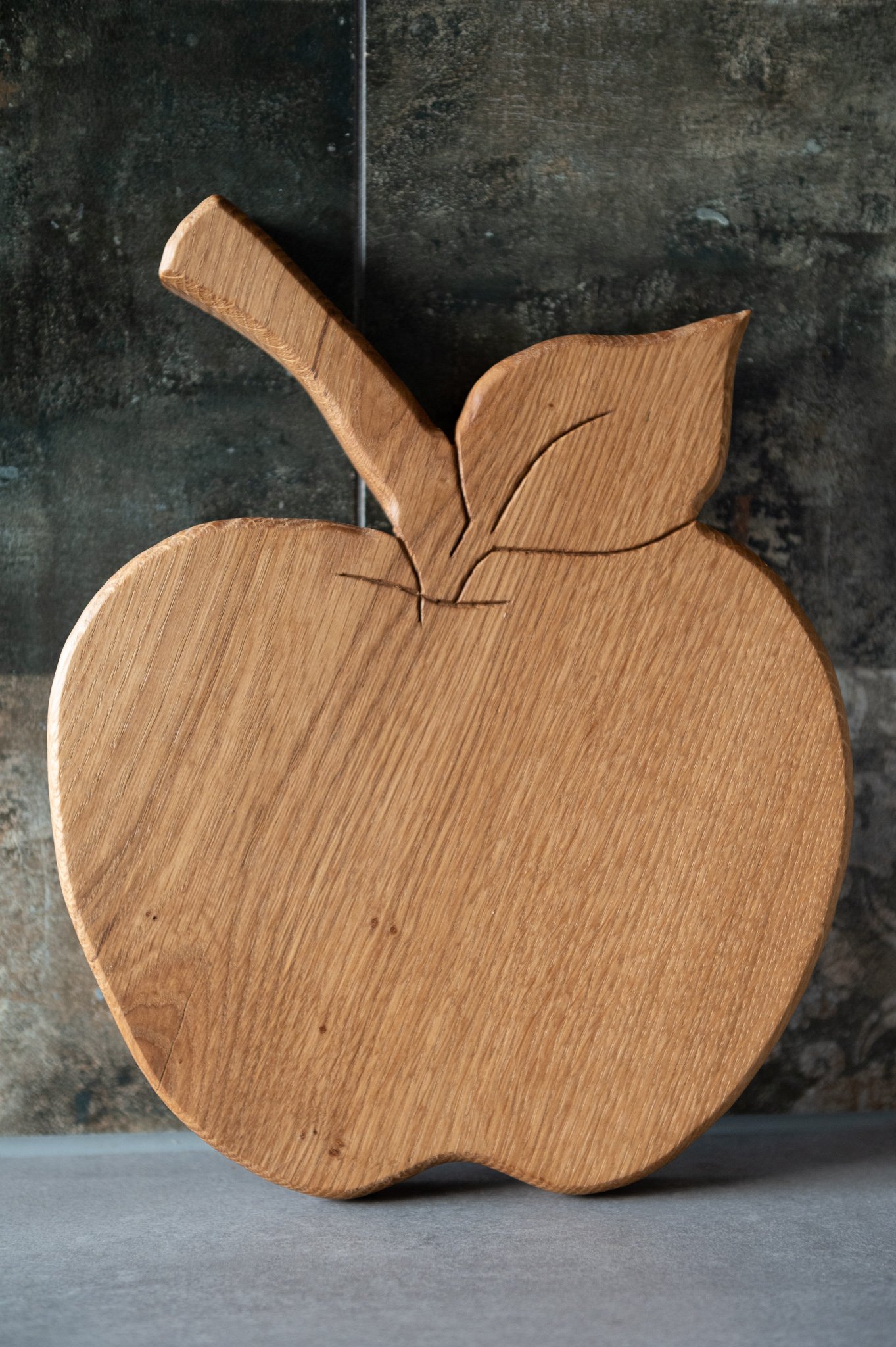 Deska do serwowania w kształcie jabłka, wykonana z trwałego drewna dębowego. Funkcjonalna i dekoracyjna, idealna do podawania serów, owoców, pieczywa czy przekąsek. Naturalna faktura drewna nadaje jej elegancki wygląd, a oryginalna forma sprawia, że świetnie ozdobi każdy stół.