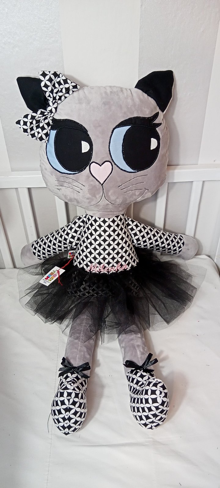 Lala kotek wykonana z ,bardzo milutkiego materiału minky, bawełny i w spódniczce z tiulu, wielkość 70 cm.
