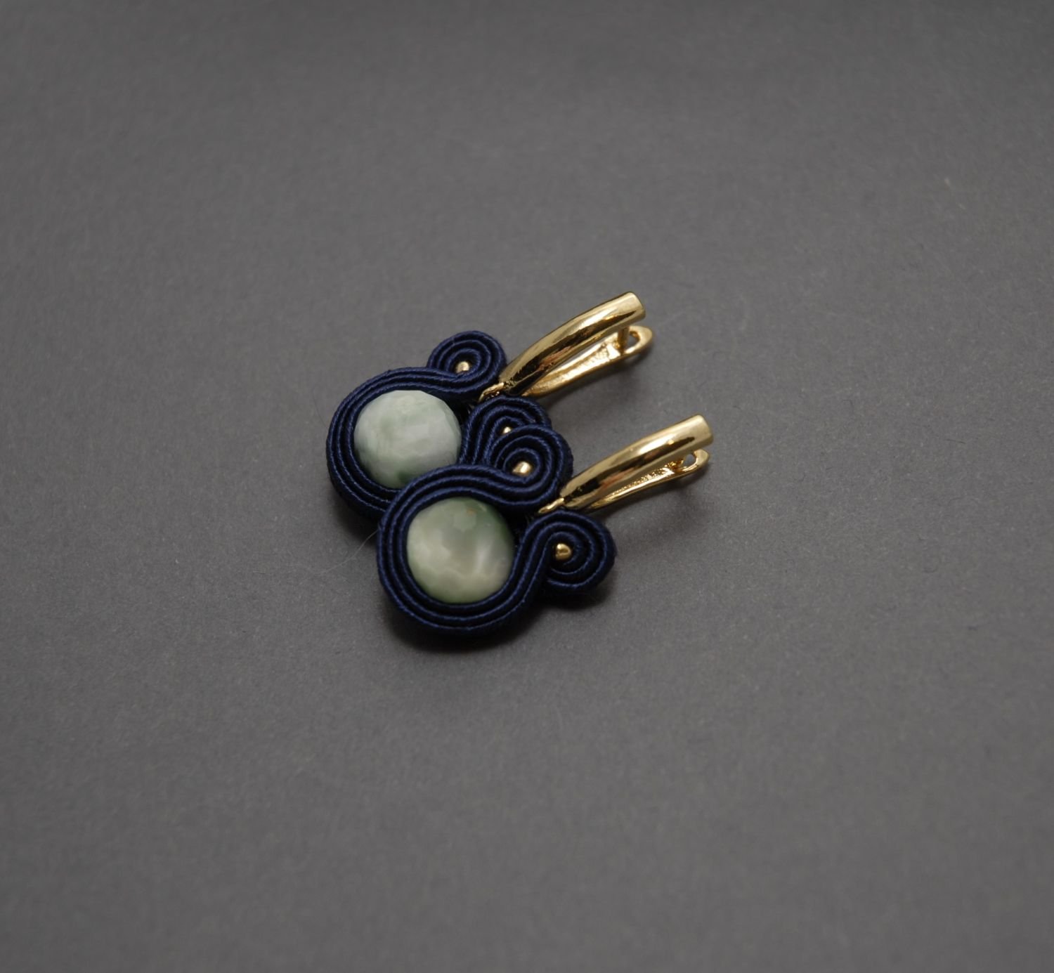 oferuję kolczyki zrobione techniką sutasz, ozdobione fasetowanymi angelitami pawimi i fasetowanymi agatami.