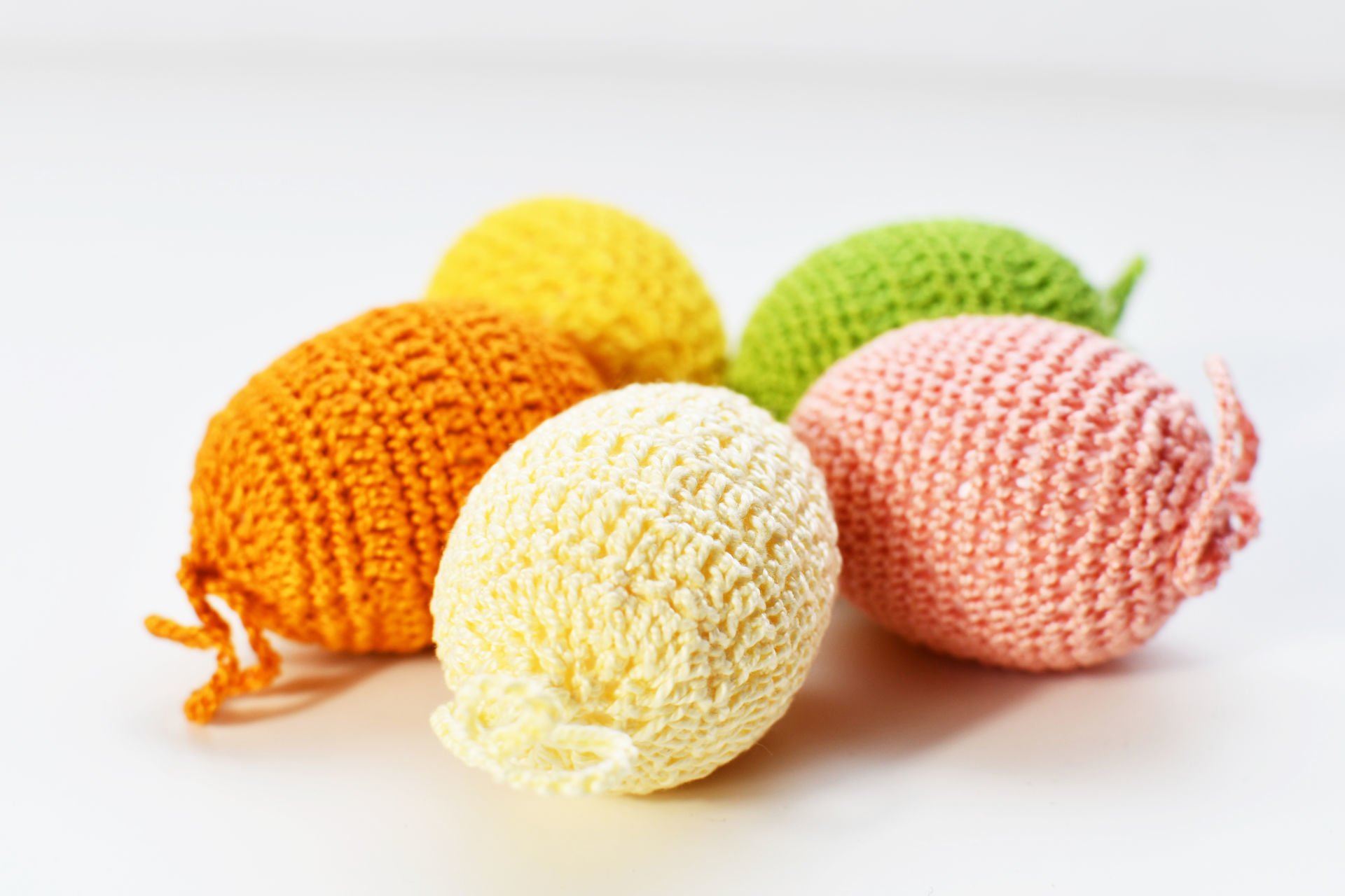 Pisanki wykonane na szydełku, z kordonka bawełnianego Maximum, na wypełnieniu styropianowym 6 cm.