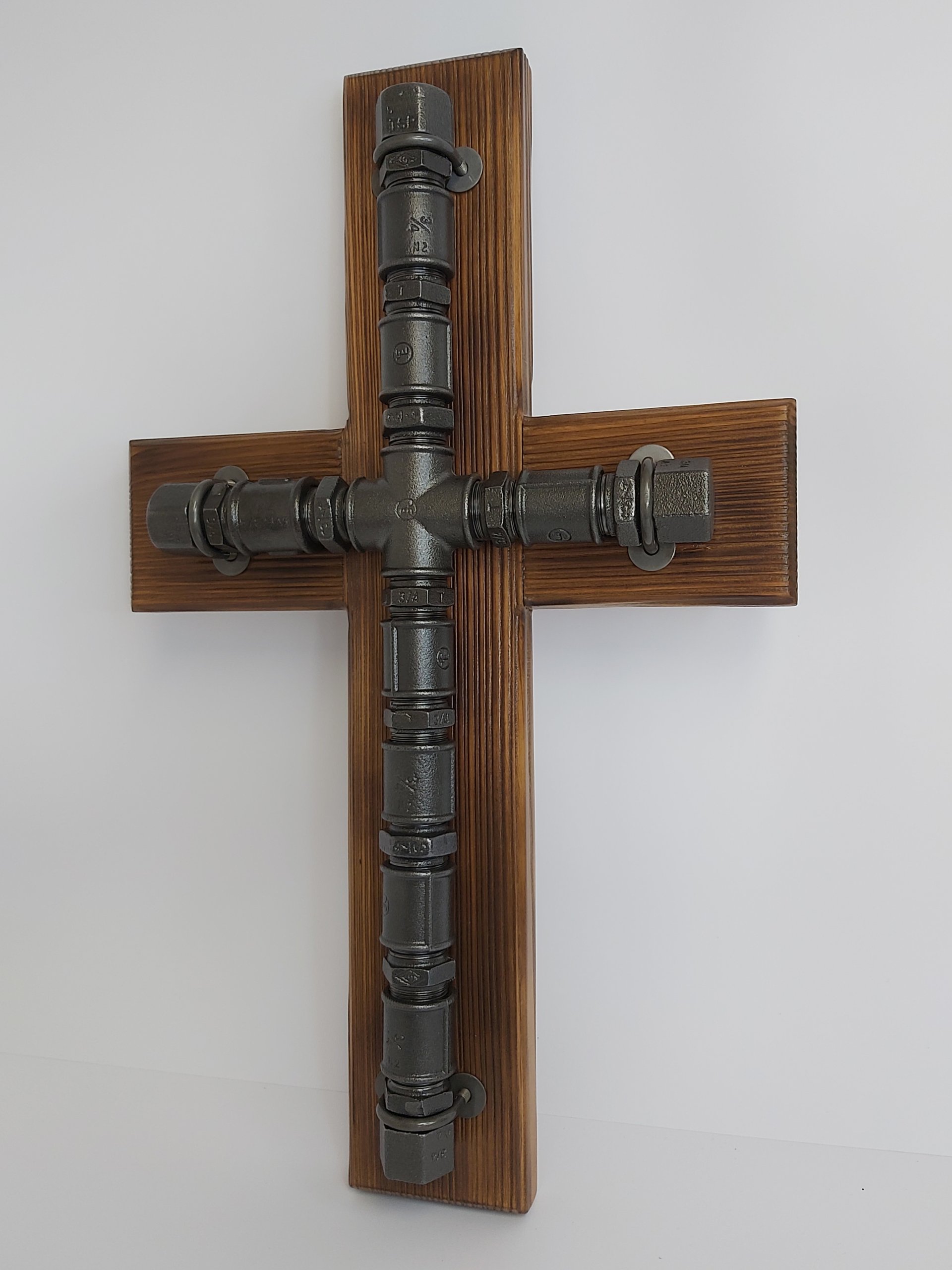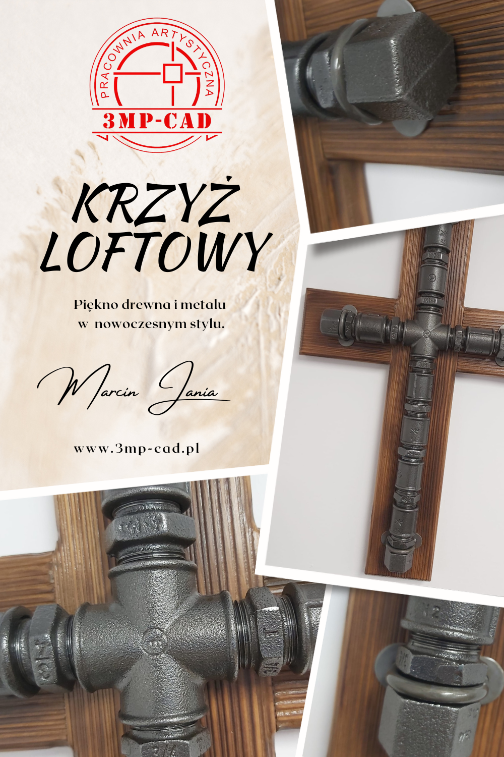 - Stylowy krzyż loftowy to wyjątkowy element dekoracyjny, który łączy w sobie prostotę formy z surowym, industrialnym charakterem. Wykonany ręcznie w Pracowni 3MP-CAD, stanowi nie tylko symbol, ale również oryginalną ozdobę wnętrza.