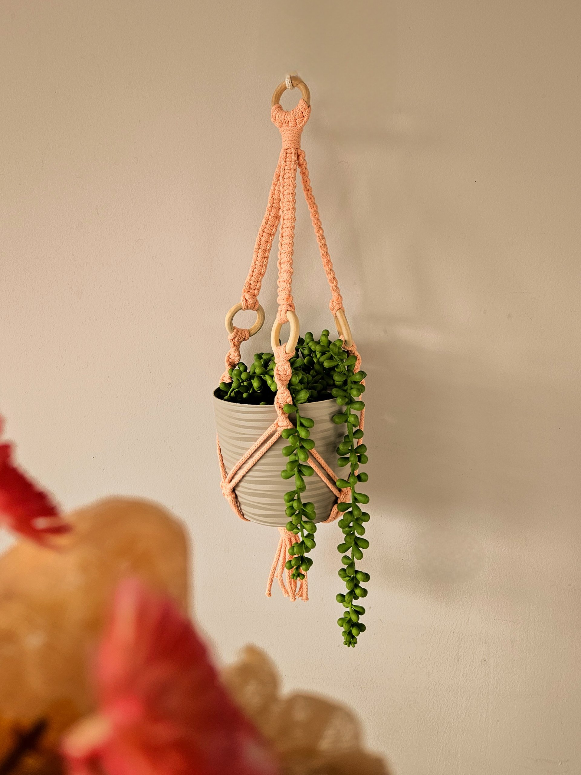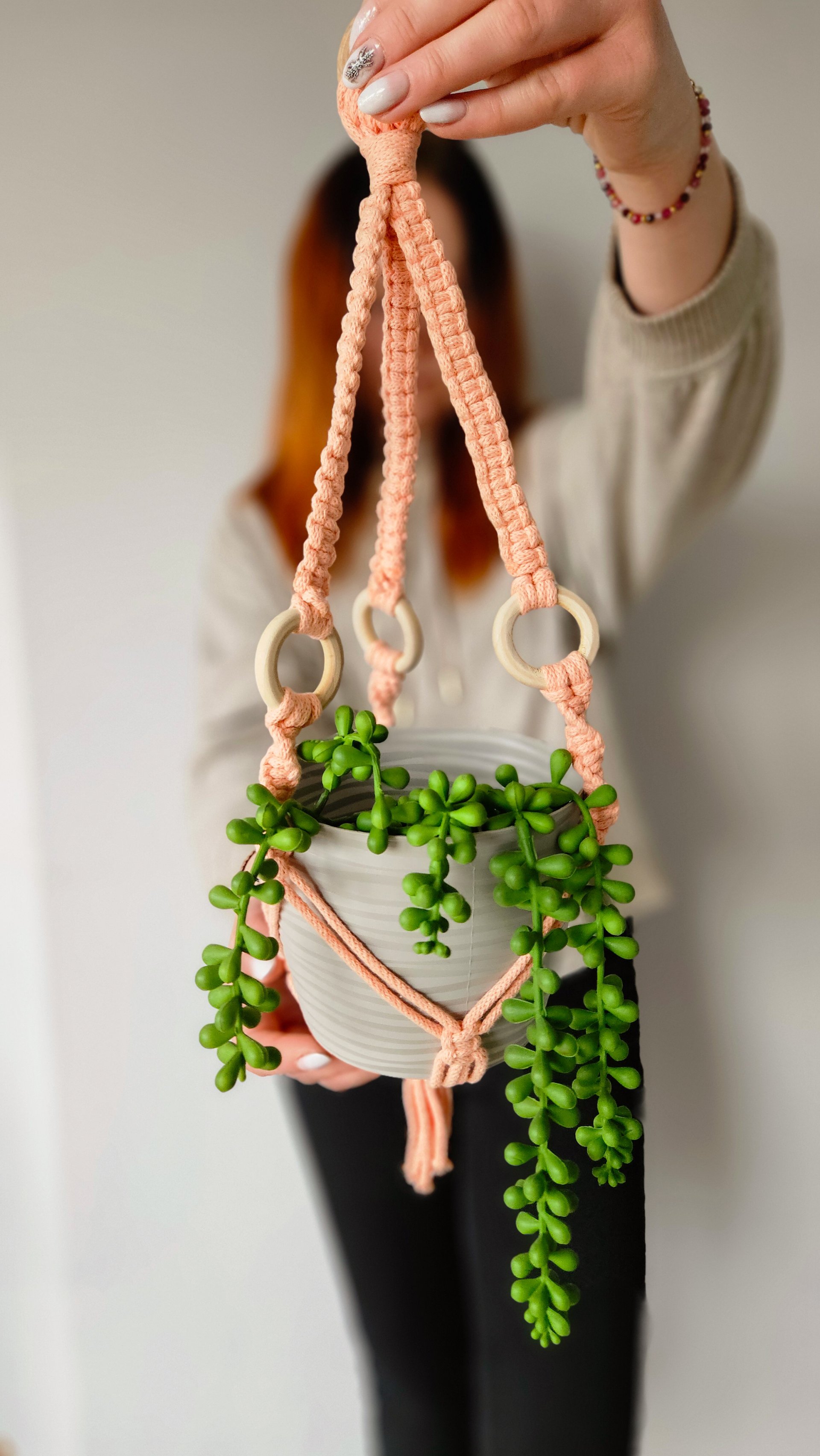 Ten makramowy wiszący kwietnik będzie wspaniałą dekoracją w Twoim domu. Stworzy unikalny klimat Boho i odświeży wnętrze nadając mu przytulny charakter.