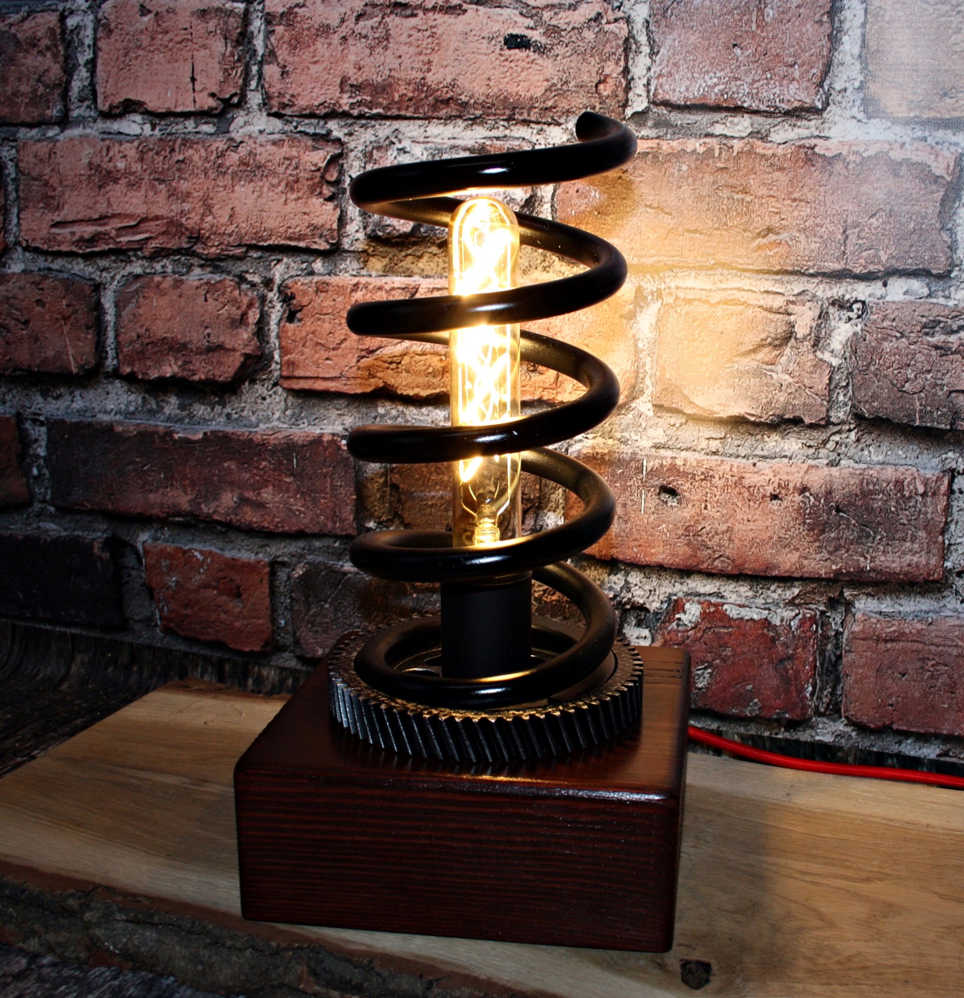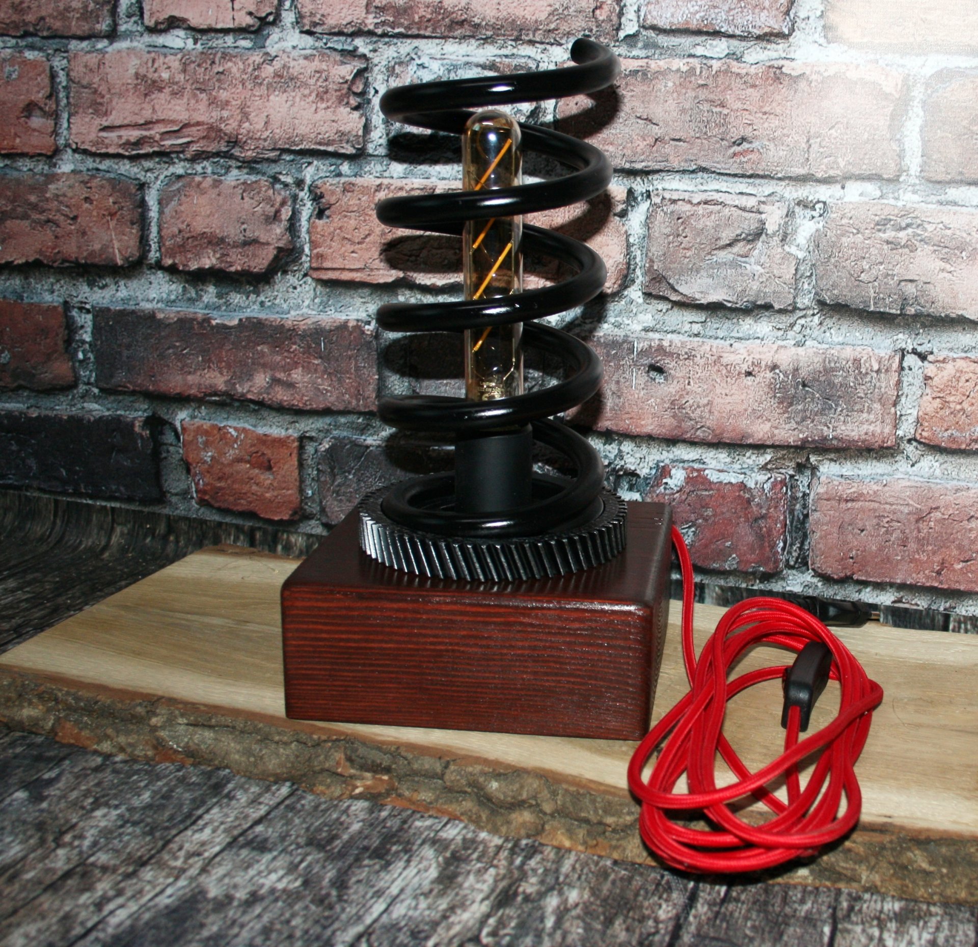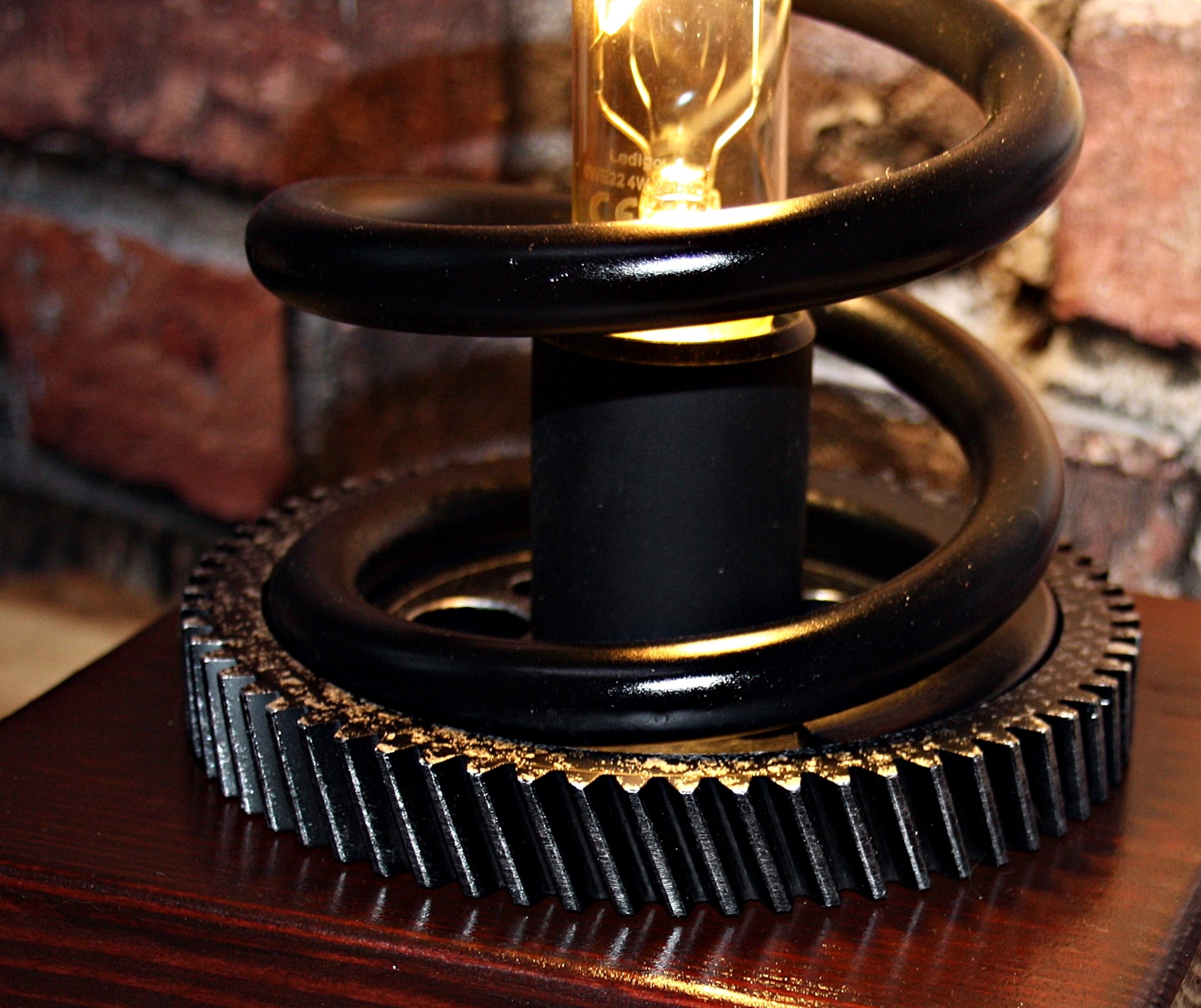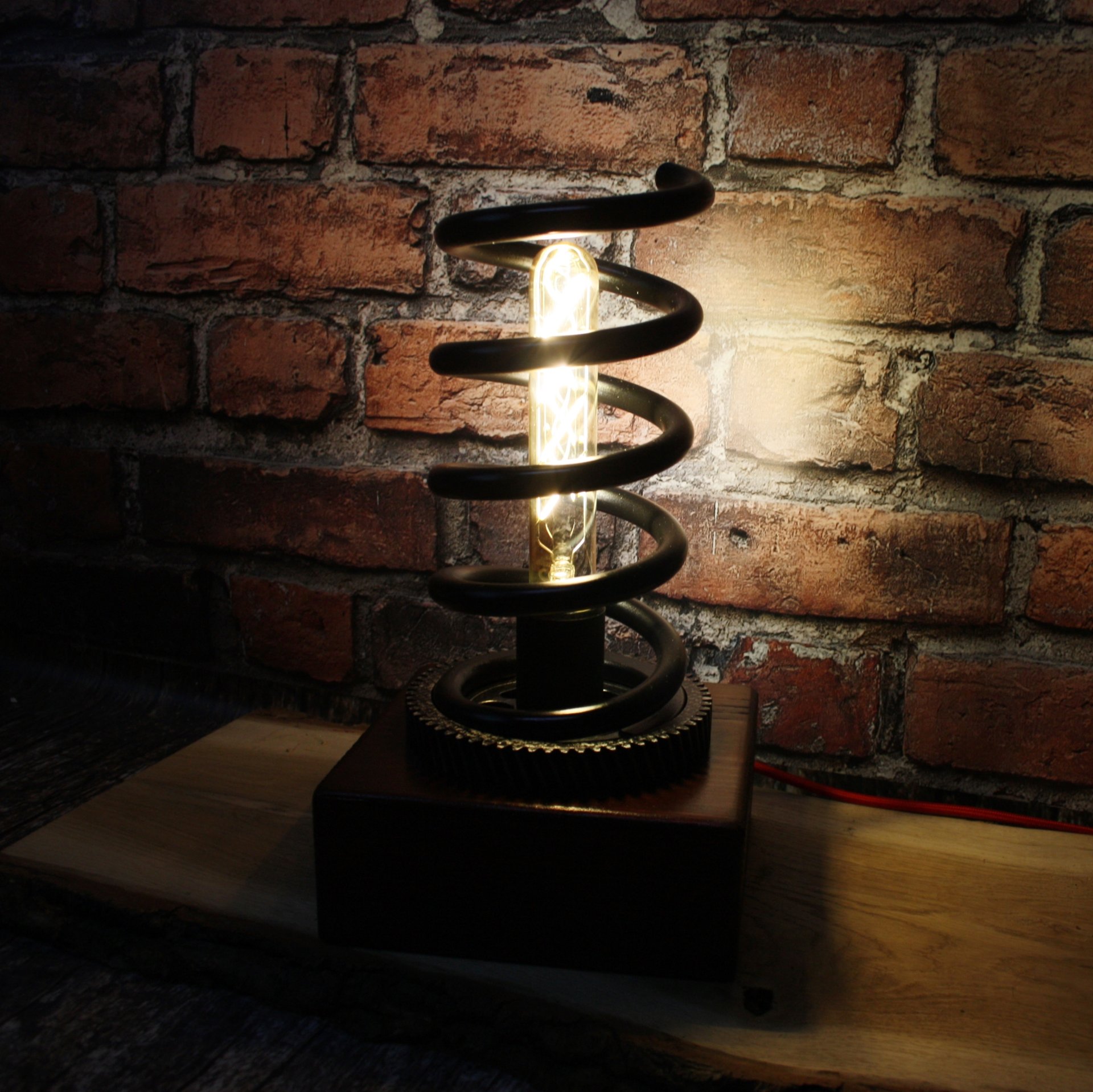 Tym razem lampa stojąca z sprężyny zawieszenia i zębatki