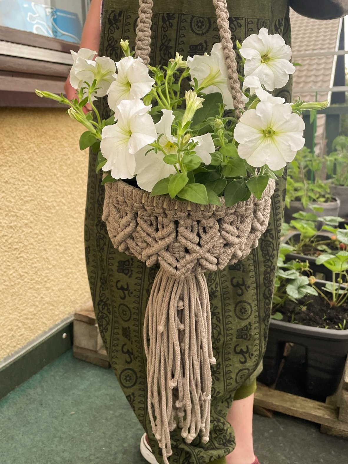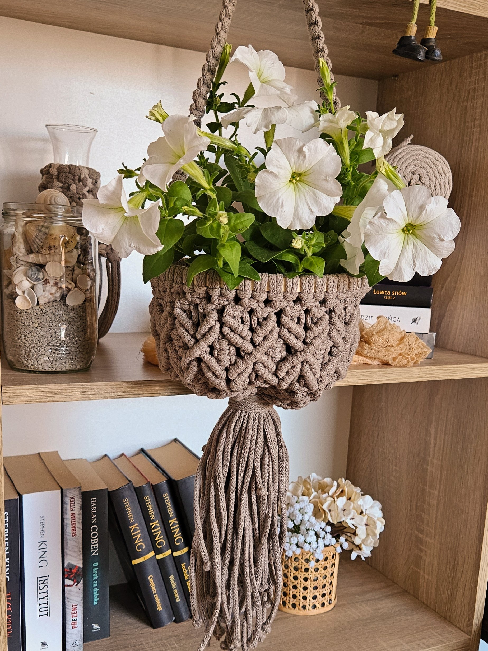 Najnowszy projekt makramowego kwietnika perfekcyjnie ozdobi, każde wnętrze i nie tylko ! Sprawdza się również na balkonie, tarasie a także w altanie.