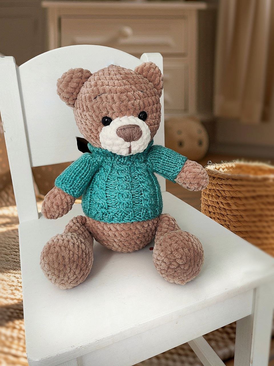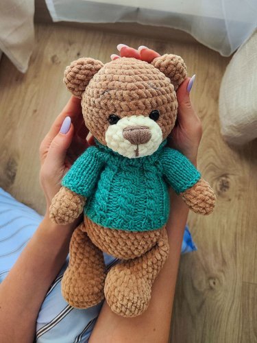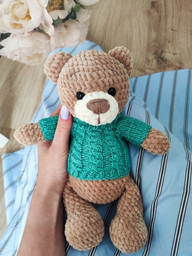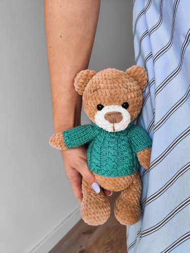 - Miękki, bezpieczny i przyjazny: Wykonany z miękkiej, hipoalergicznej włóczki, miś jest bezpieczny nawet dla maluszków.