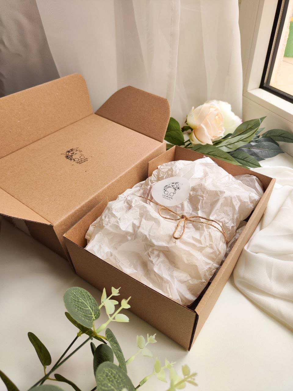 Miś Misiowy przychodzi do Ciebie pięknie zapakowany – gotowy, by od razu trafić w ręce ukochanej osoby. Każdy miś jest starannie owijany w delikatny, ekologiczny papier oraz pakowany w pudełko z naturalnych materiałów, co dodaje mu uroku i wyjątkowości.