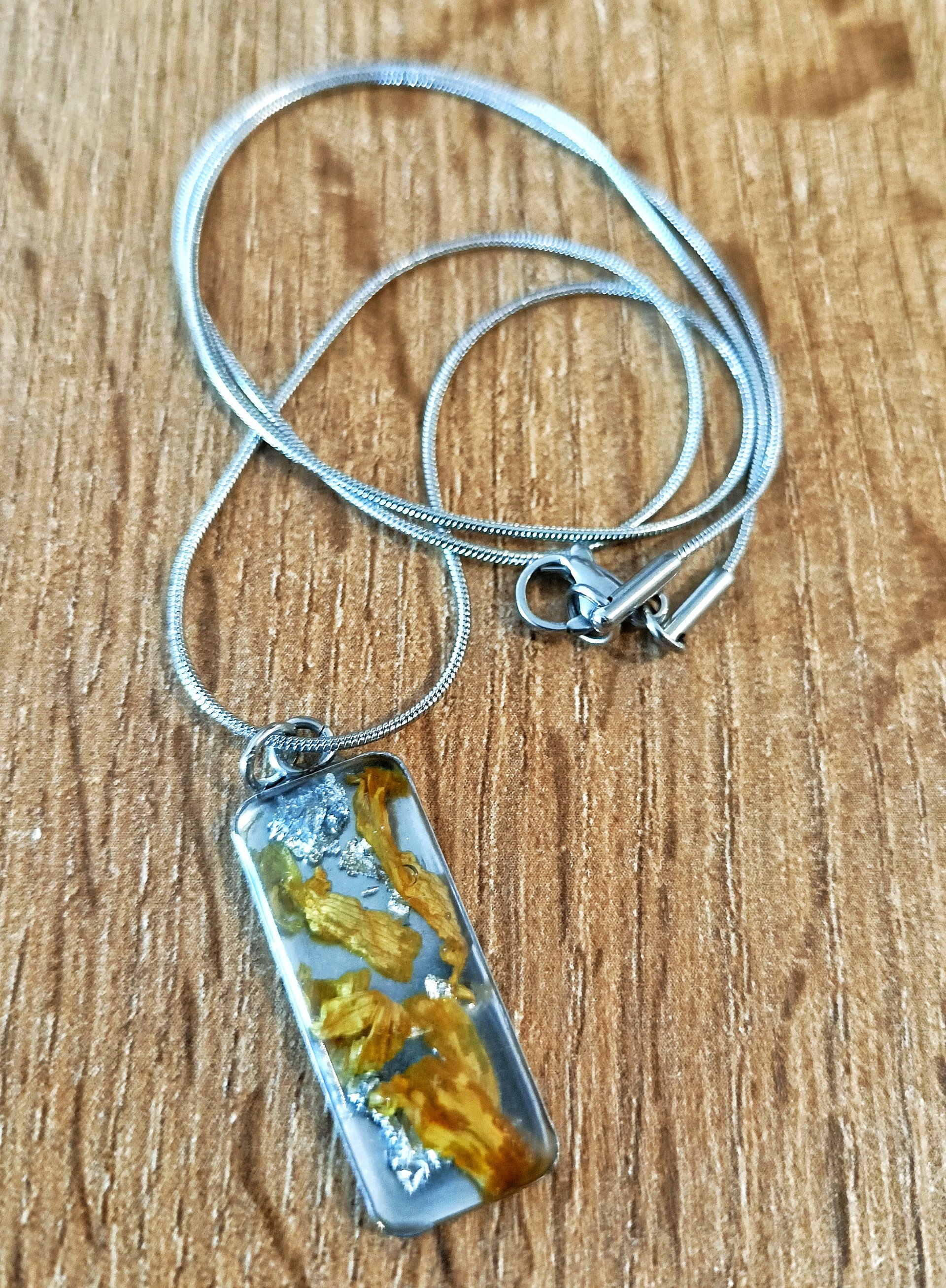 naszyjnik ze słonecznikiem, naszyjnik handmade, biżuteria z żywicy, resin pro jewelry, naszyjnik z kwiatem, biżuteria naturalna, prezent dla niej, naszyjnik stal nierdzewna, biżuteria z suszonymi kwiatami, biżuteria boho, naszyjnik na prezent
