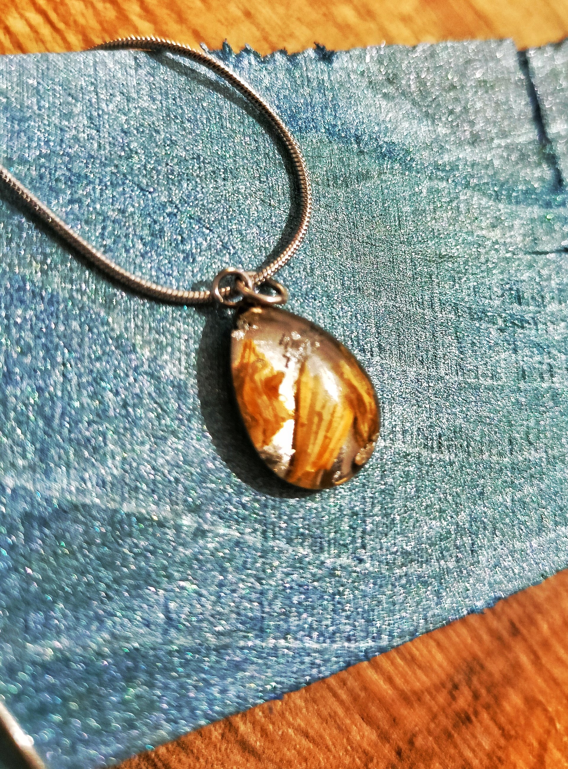 naszyjnik z żywicy handmade, naszyjnik ze słonecznikiem, biżuteria z prawdziwym kwiatem, naszyjnik stal nierdzewna, wisiorek kropla z żywicy, prezent dla kobiety, biżuteria naturalna, minimalistyczny naszyjnik, kwiat w żywicy, ręcznie robiona biżuteria