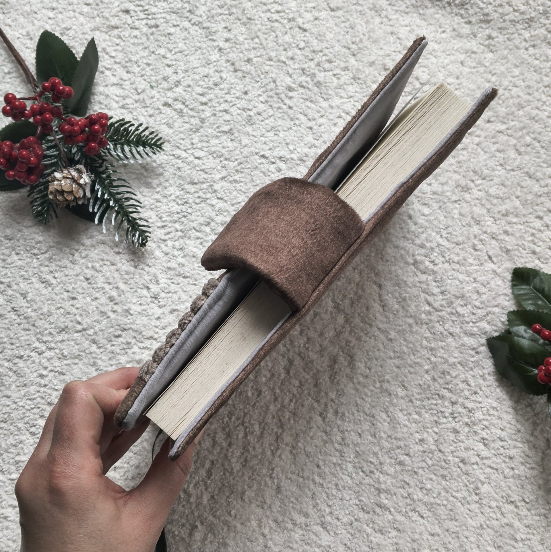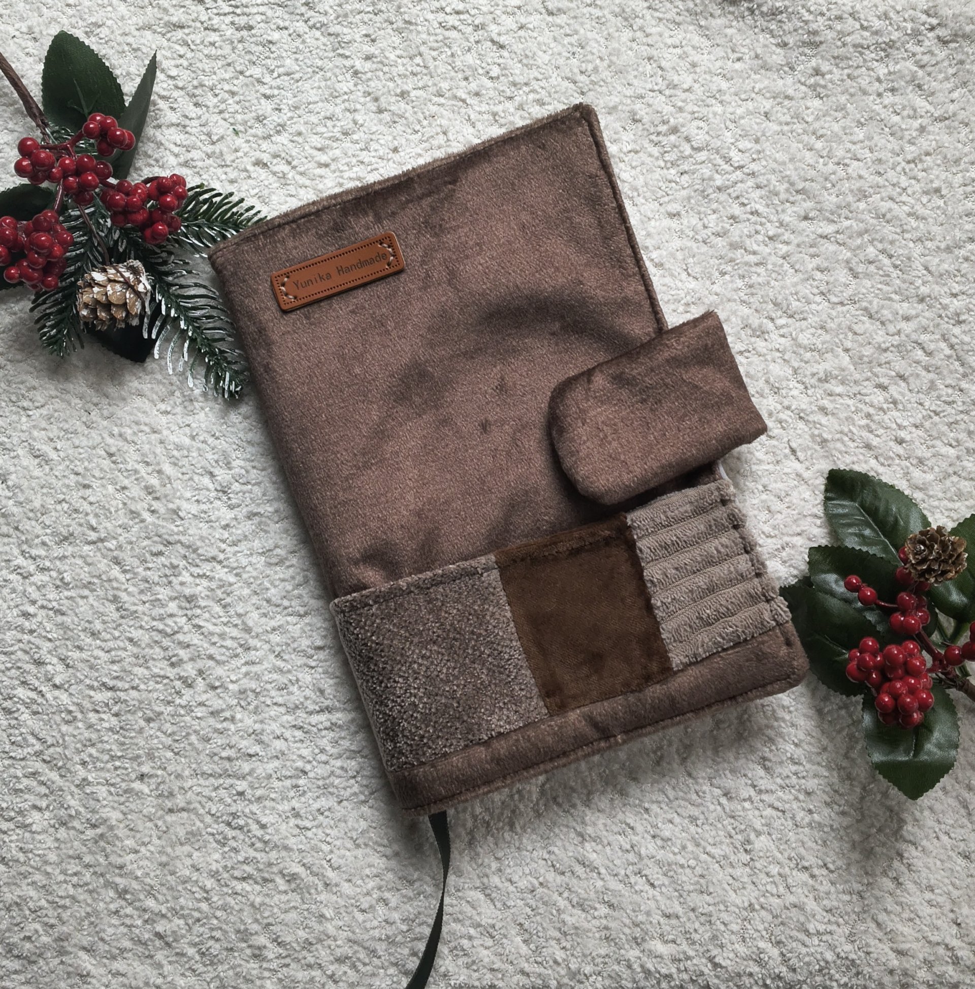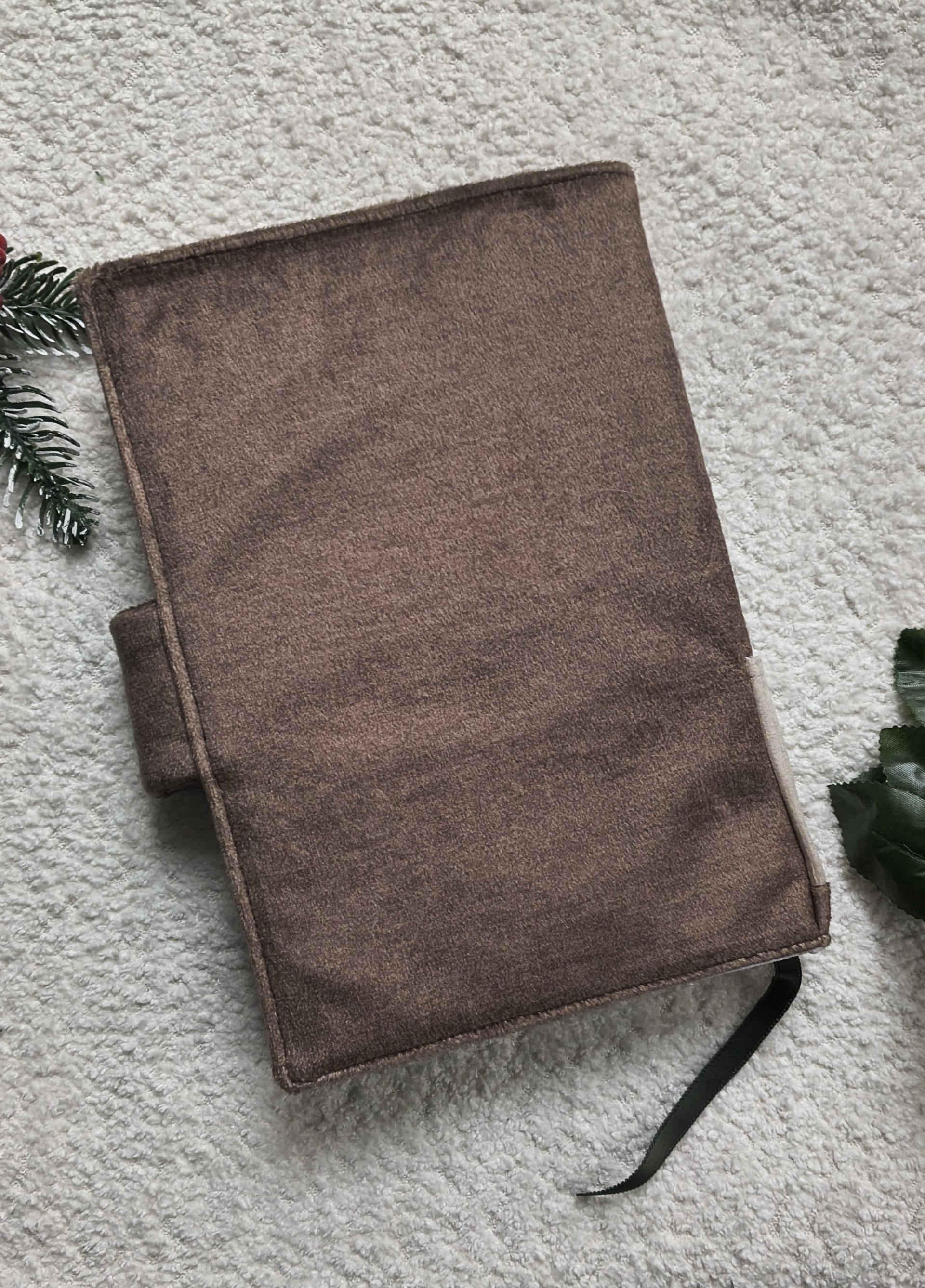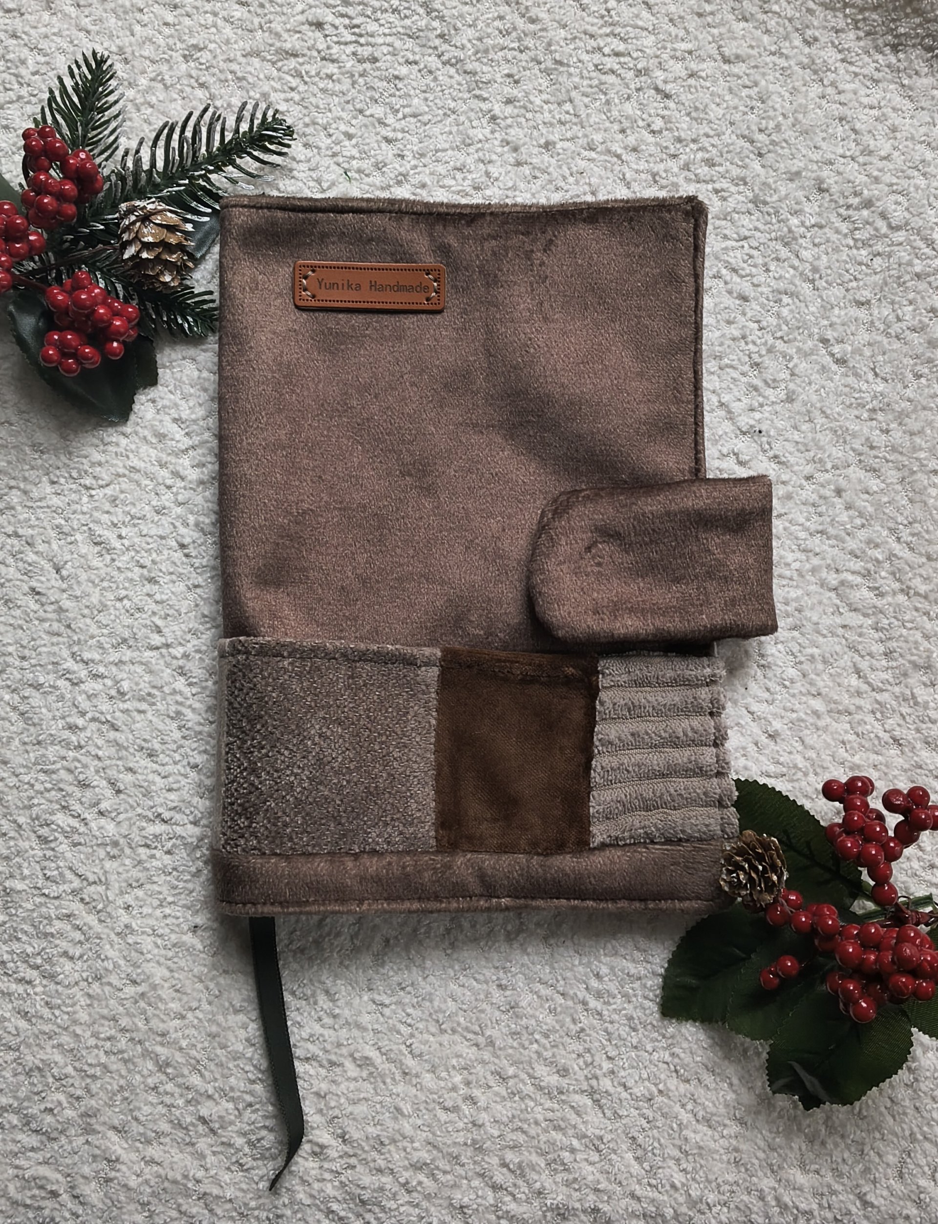 Stylowa i praktyczna okładka wykonana z wysokiej jakości tkaniny tapicerskiej w ciepłych, kawowych odcieniach. To idealna ochrona dla Twojej ulubionej książki, kalendarza, notesu lub pamiętnika – zarówno do domu, jak i do torebki.