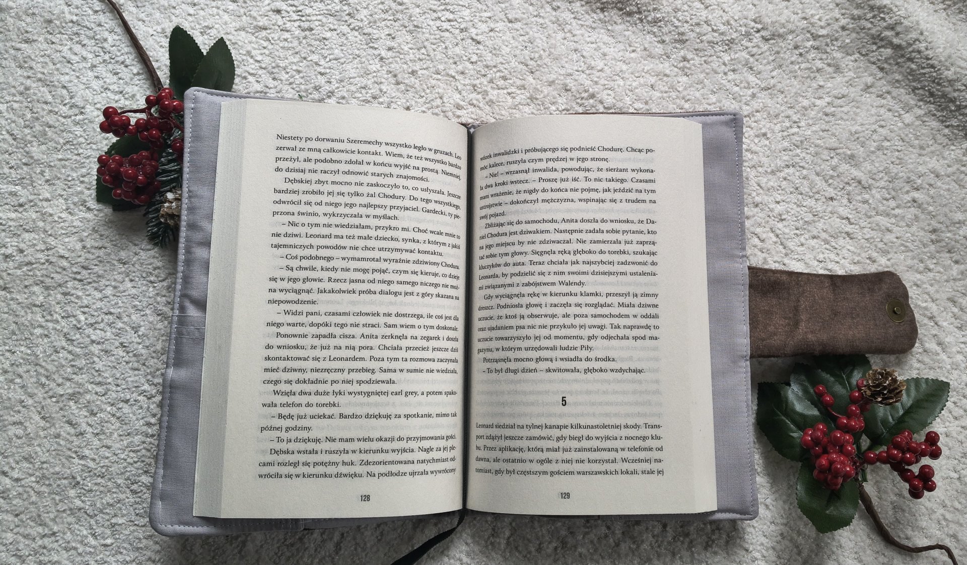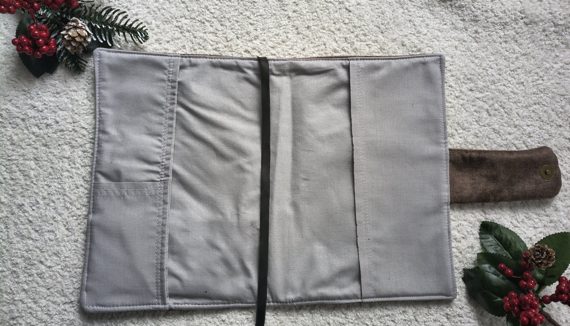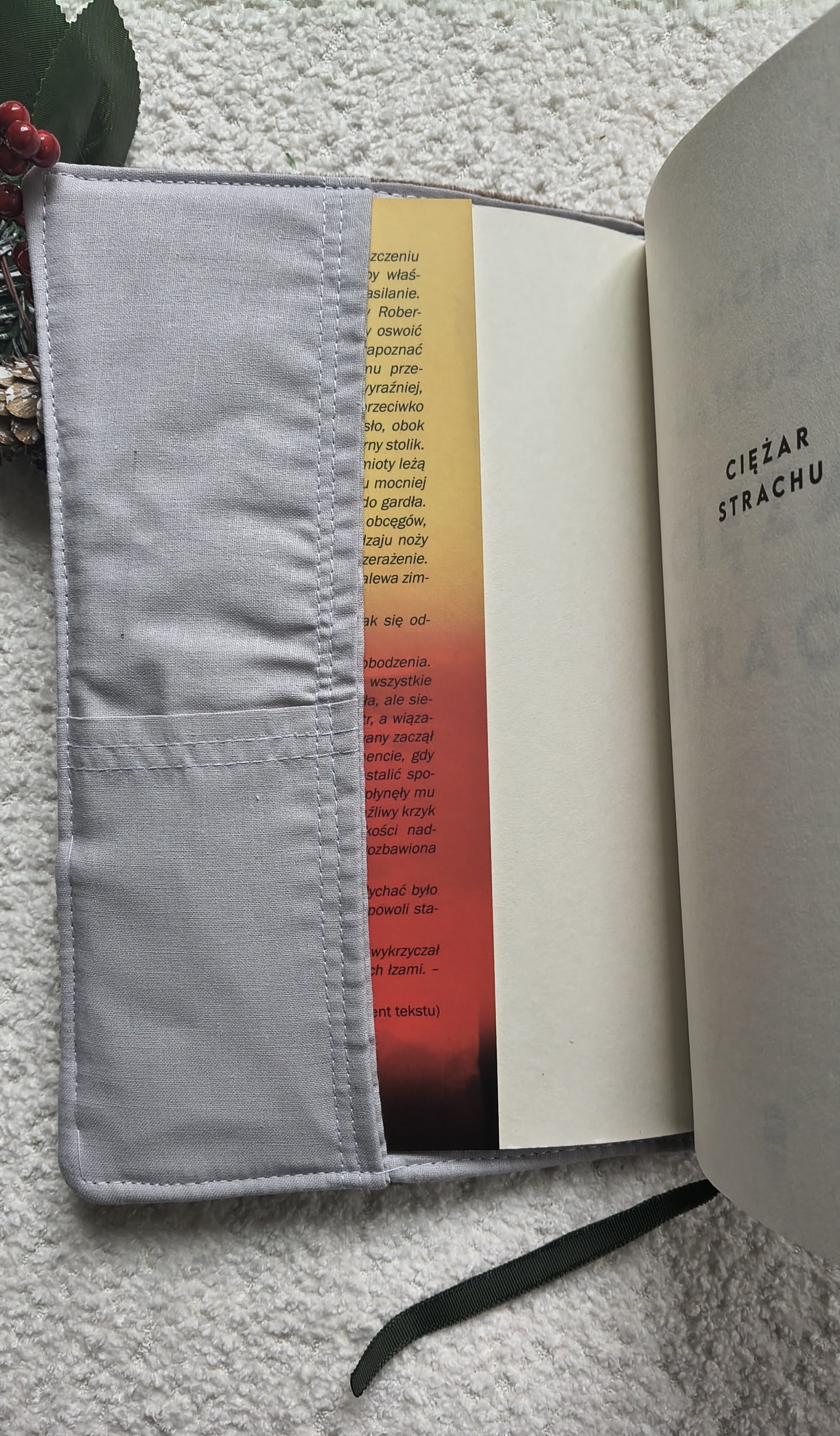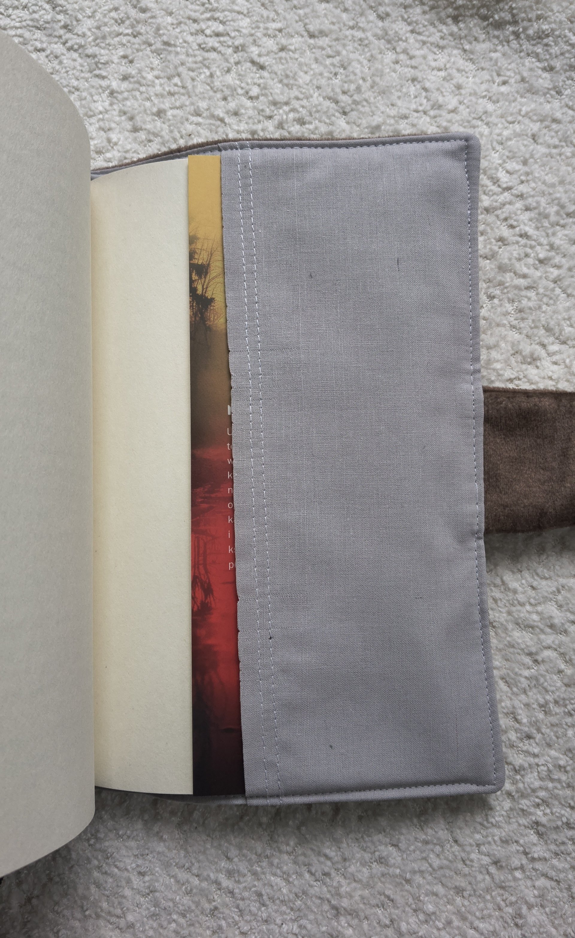 W środku bawełniana podszewka oraz tasiemka pełniąca funkcję zakładki, która ułatwia wracanie do przerwanego czytania.