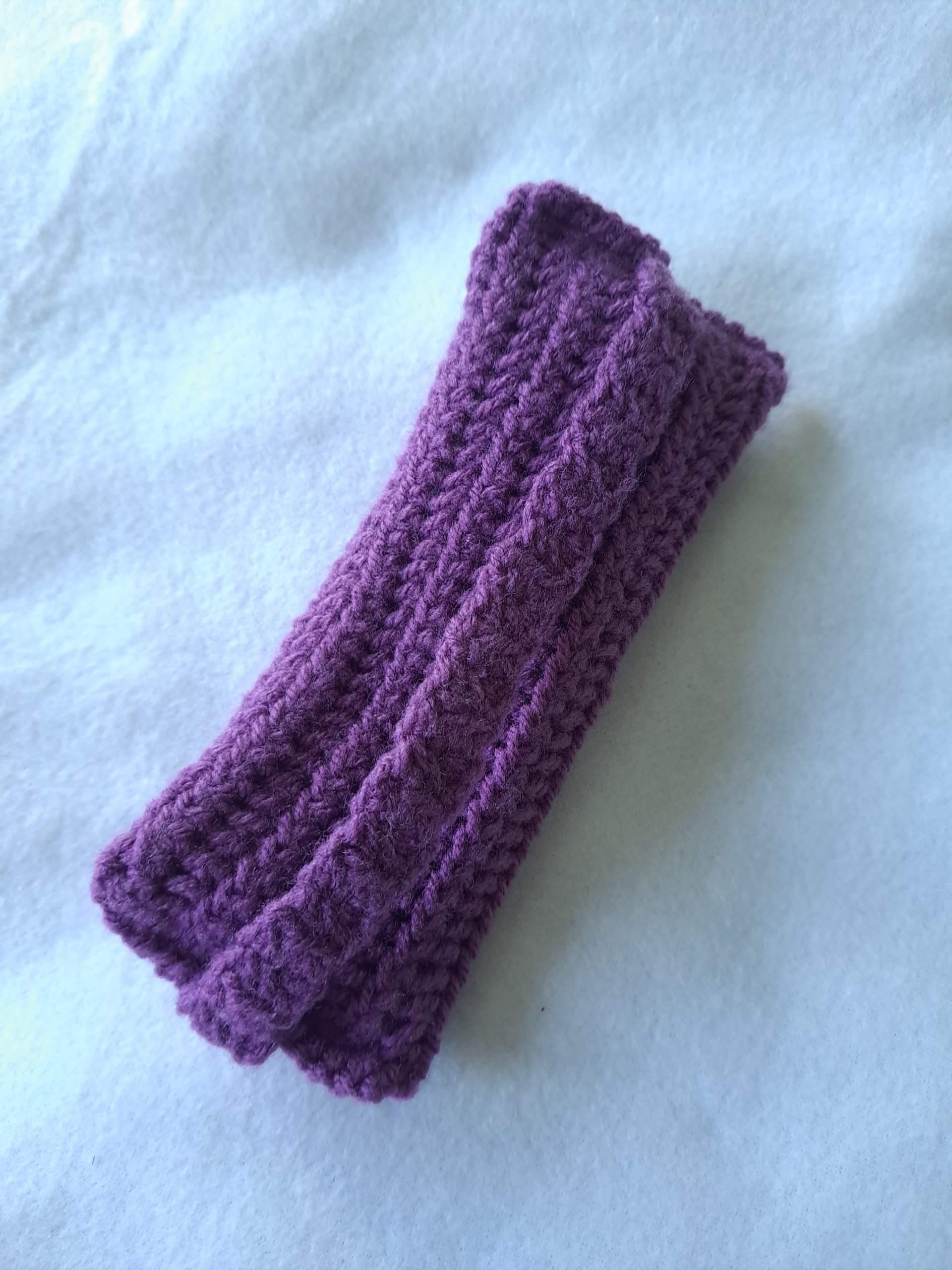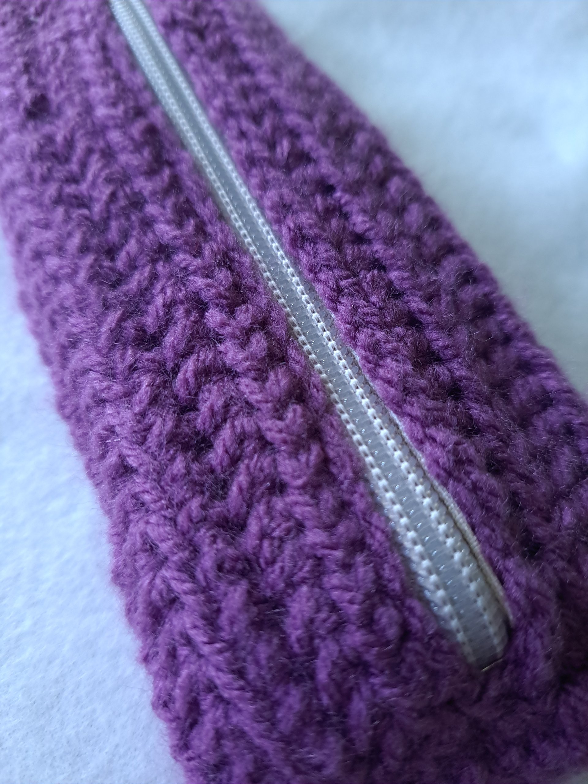 Piórnik wykonany szydełkiem z włóczki akrylowej.