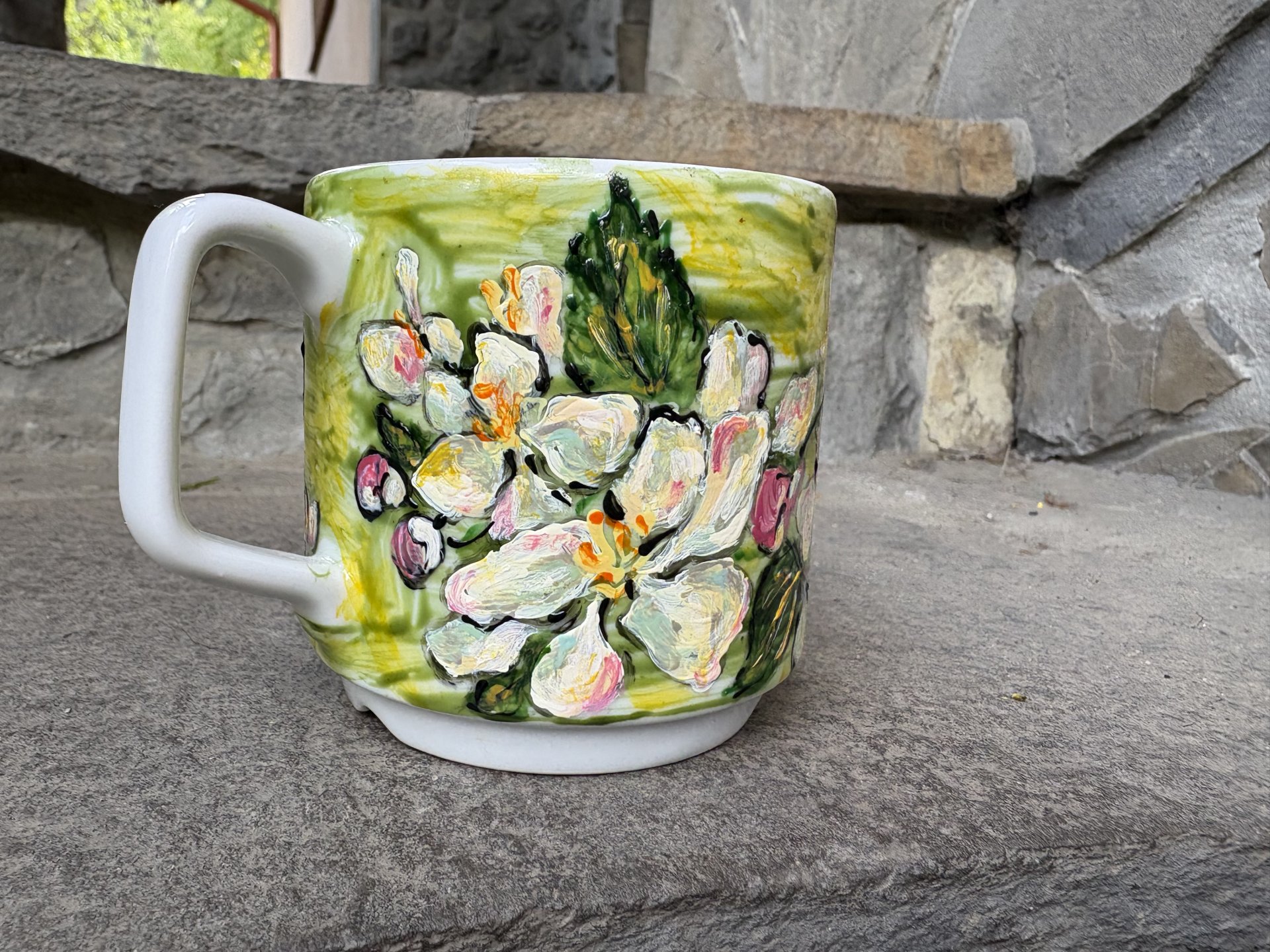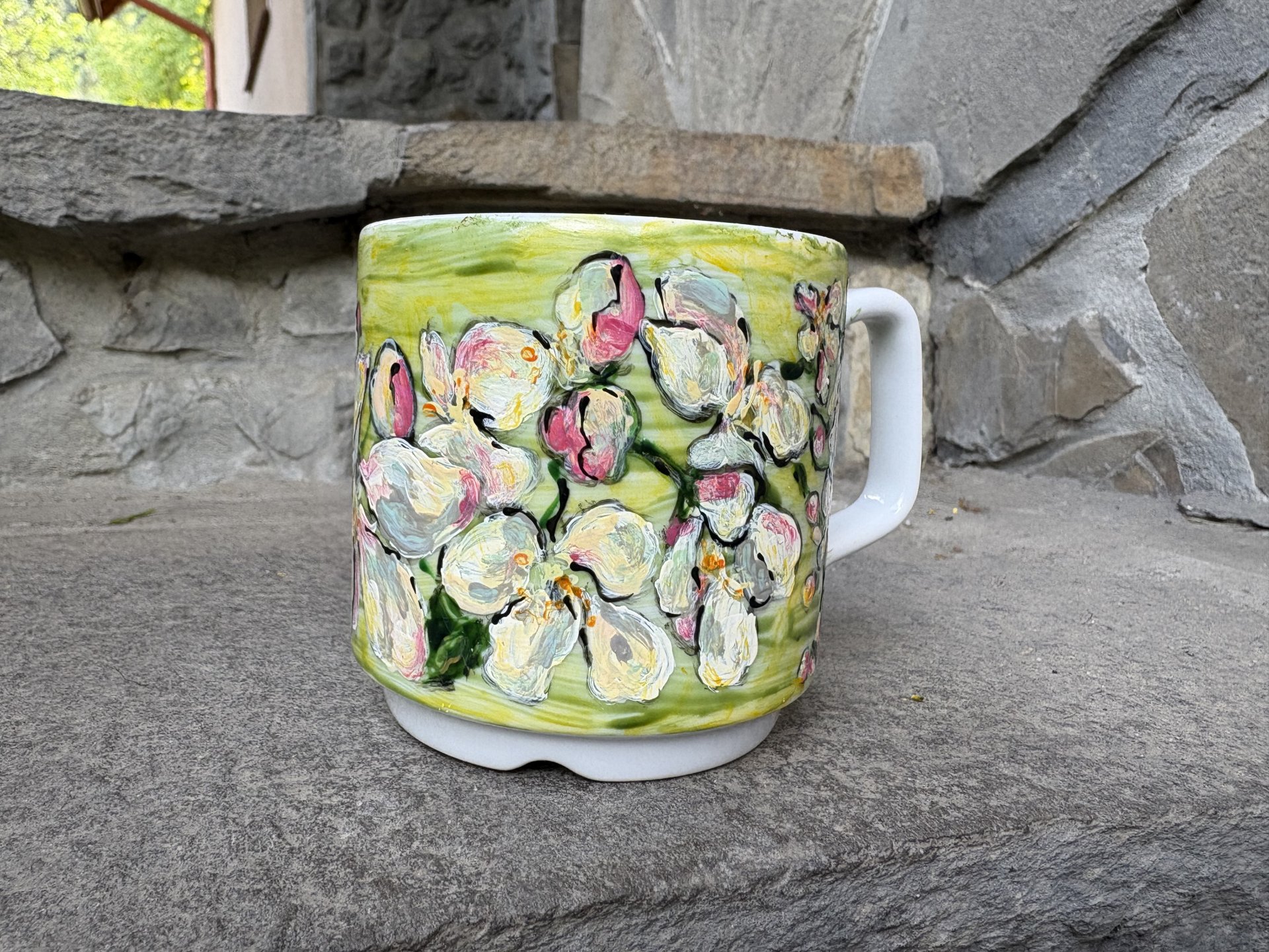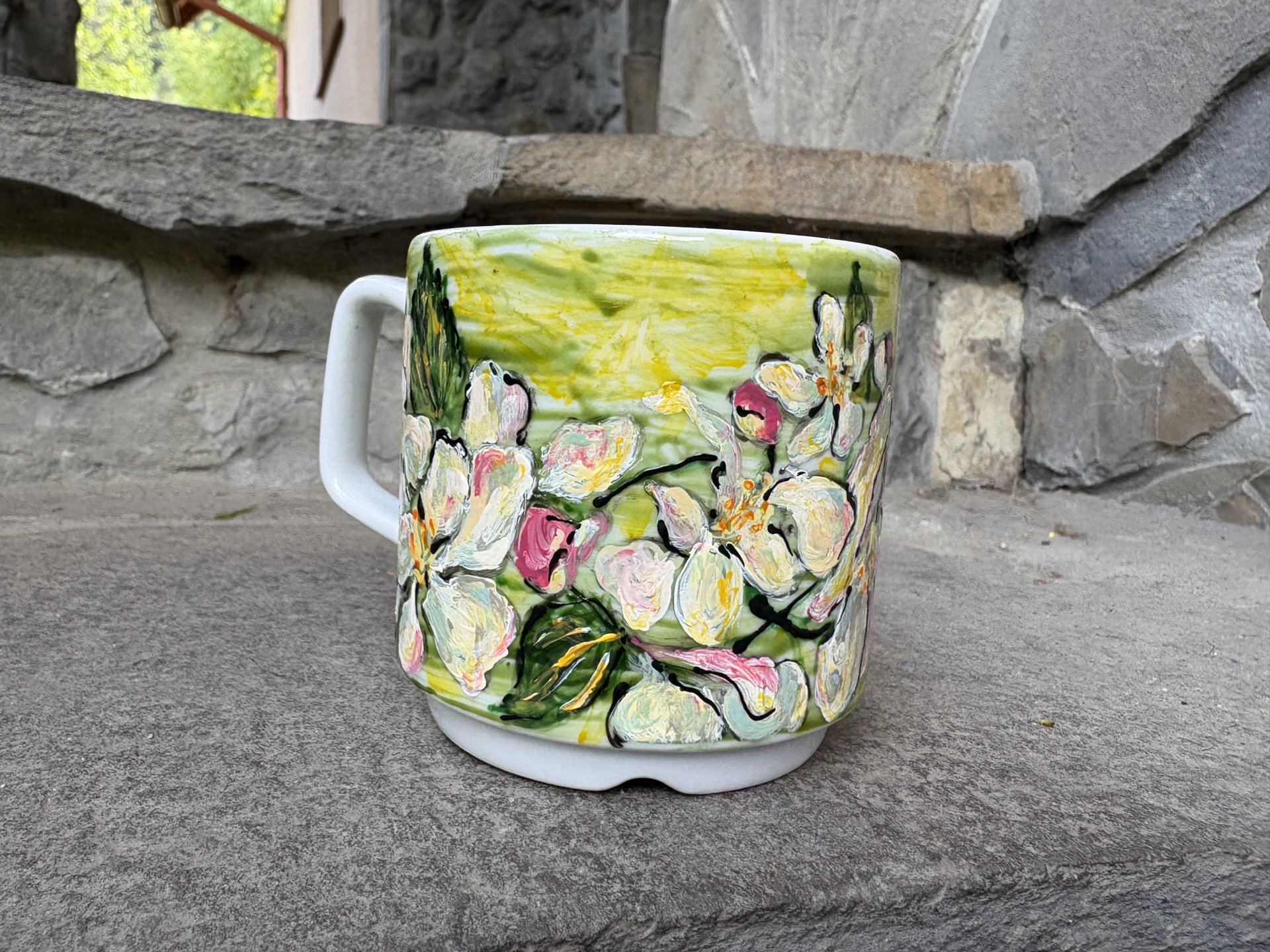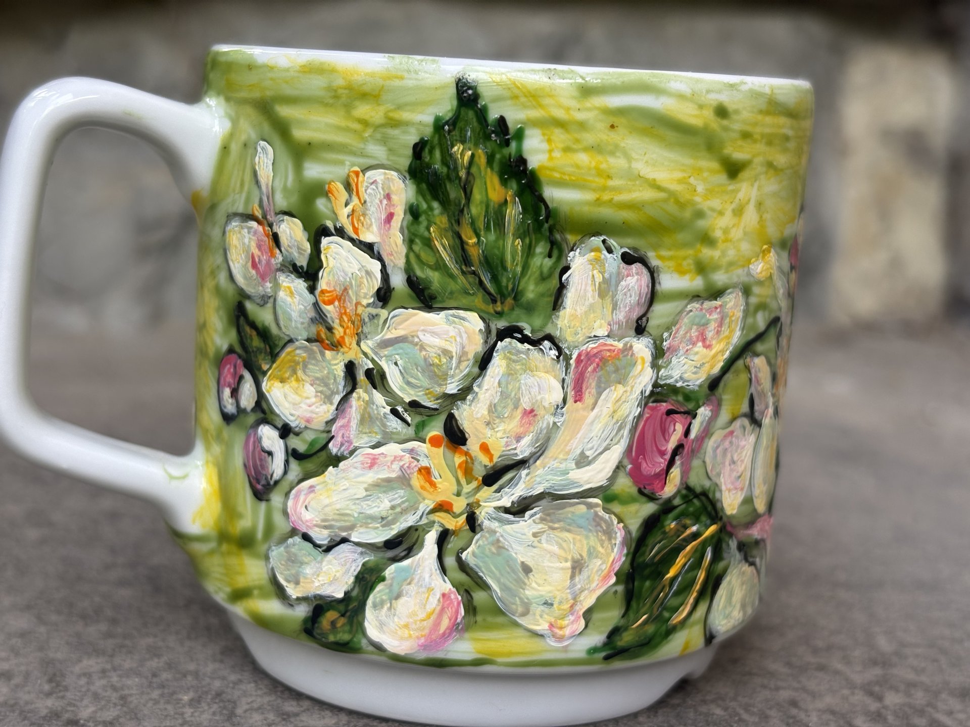 Porcelanowy kubek o pojemności 200 ml ręcznie malowany farbami do porcelany i utrwalony termicznie.