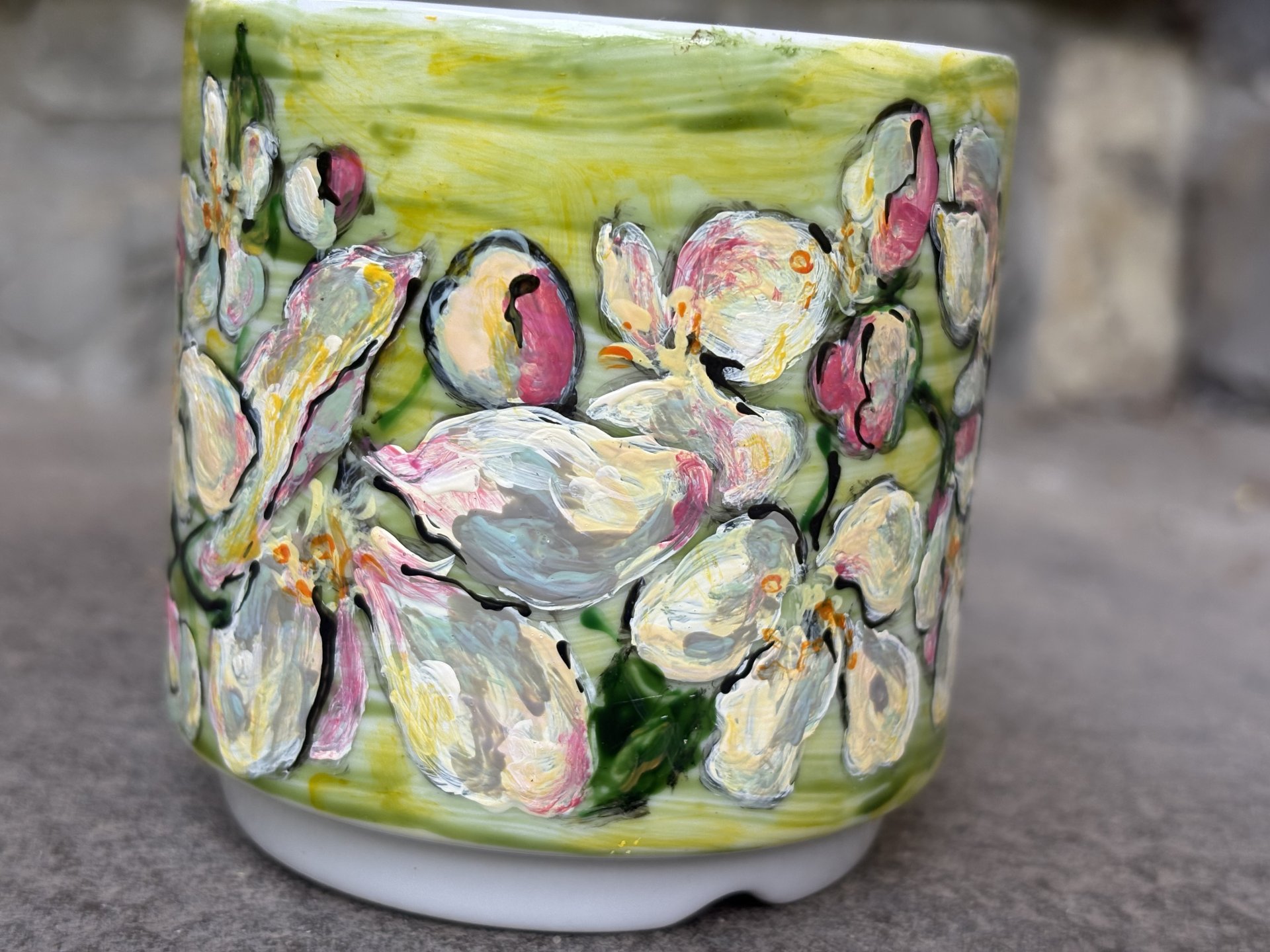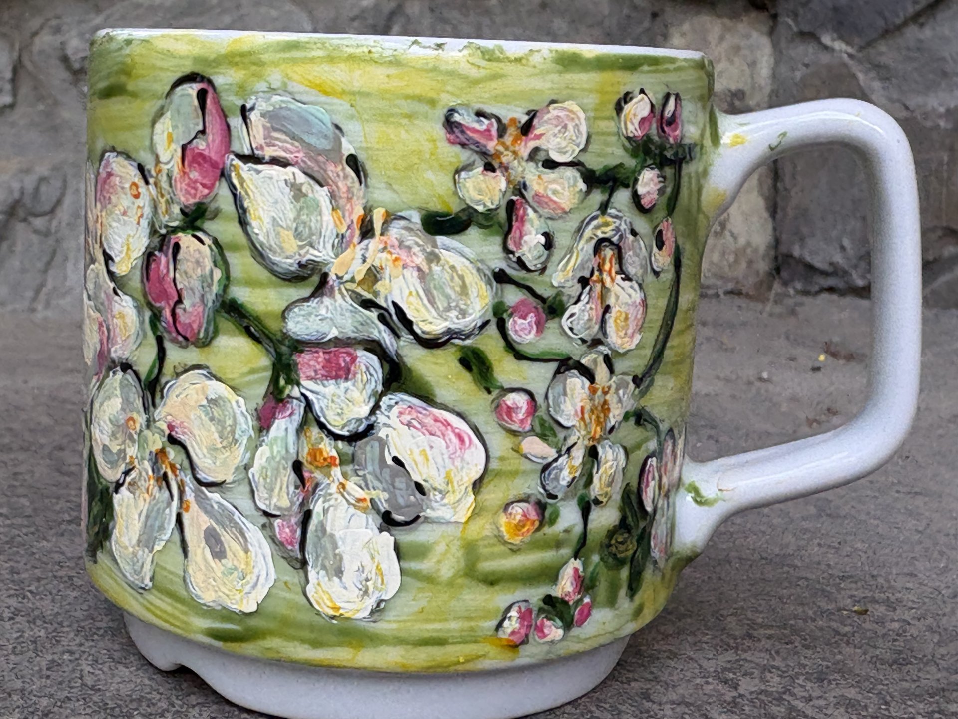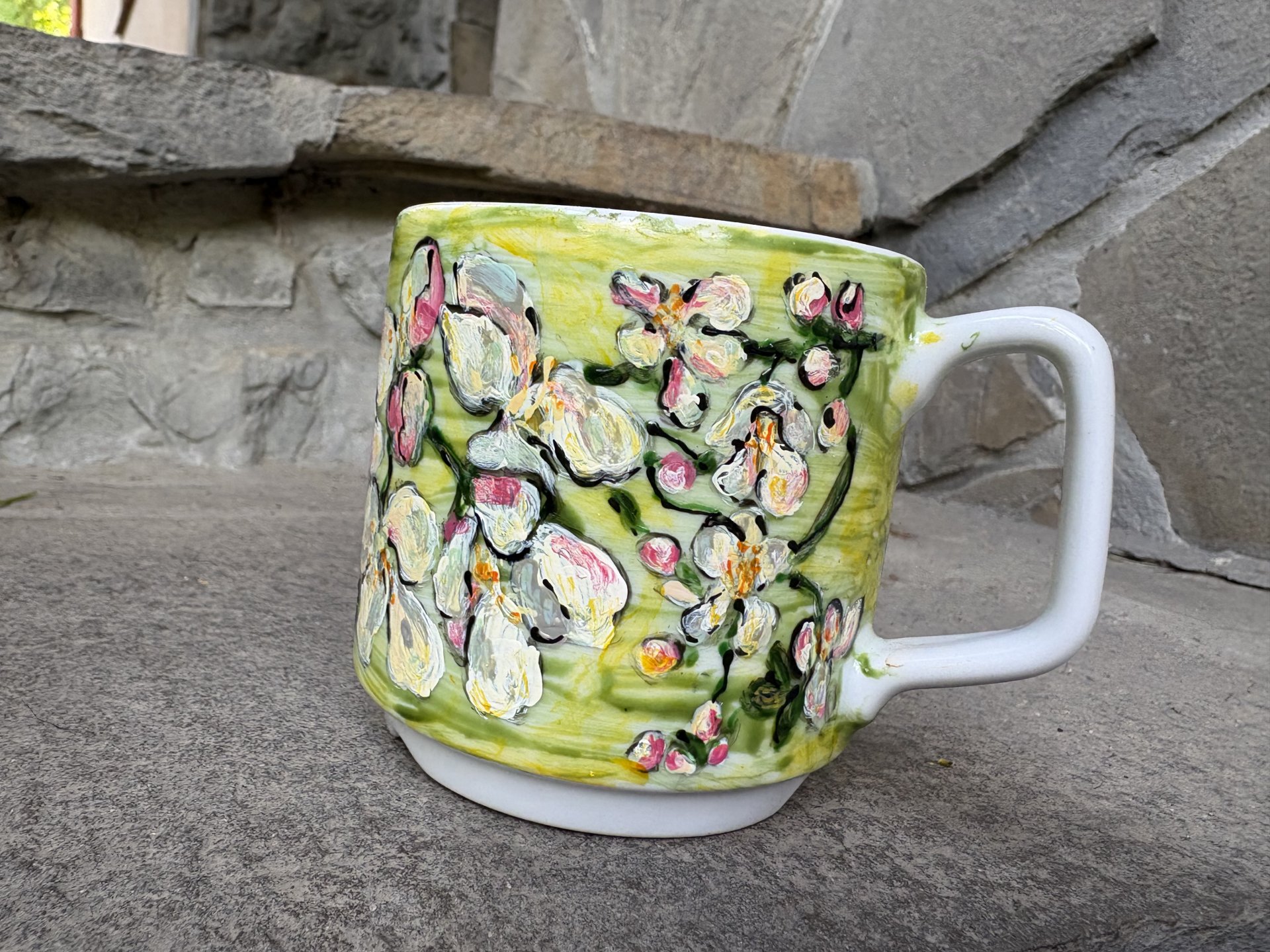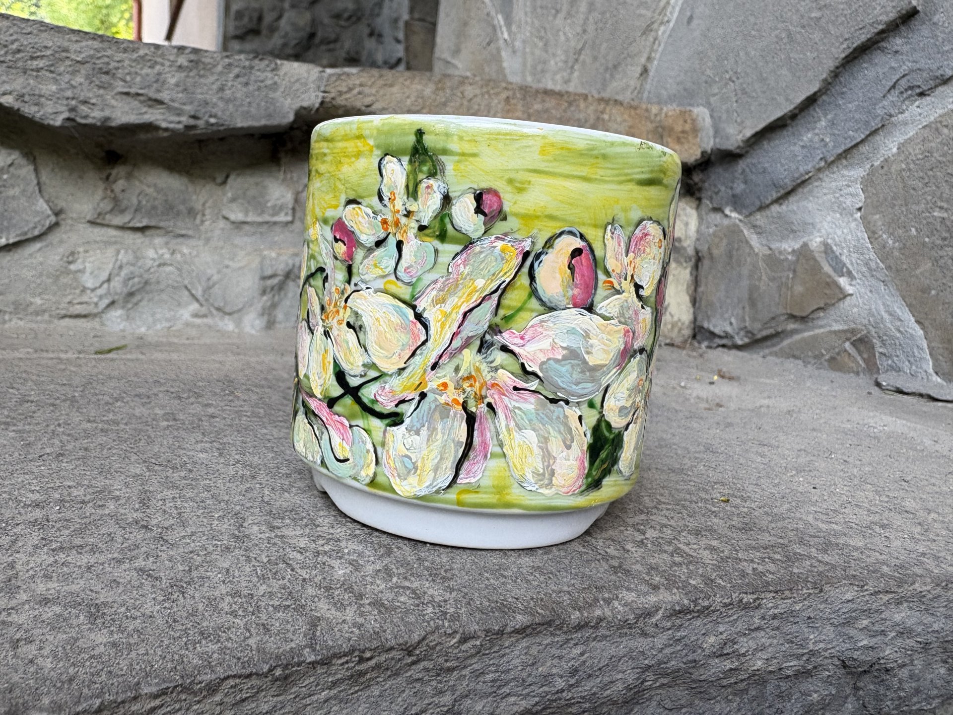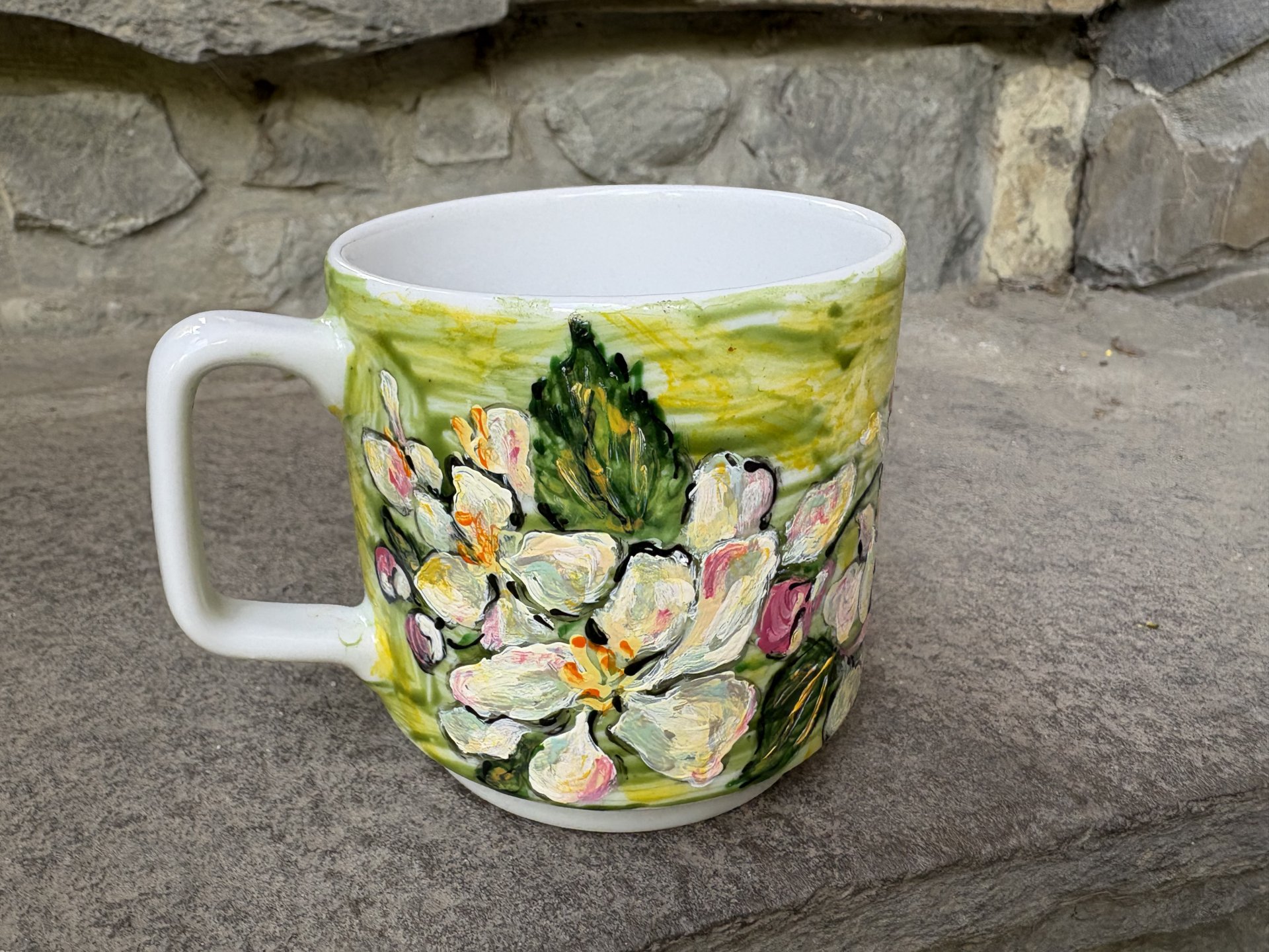 Porcelanowy kubek o pojemności 200 ml ręcznie malowany farbami do porcelany i utrwalony termicznie.