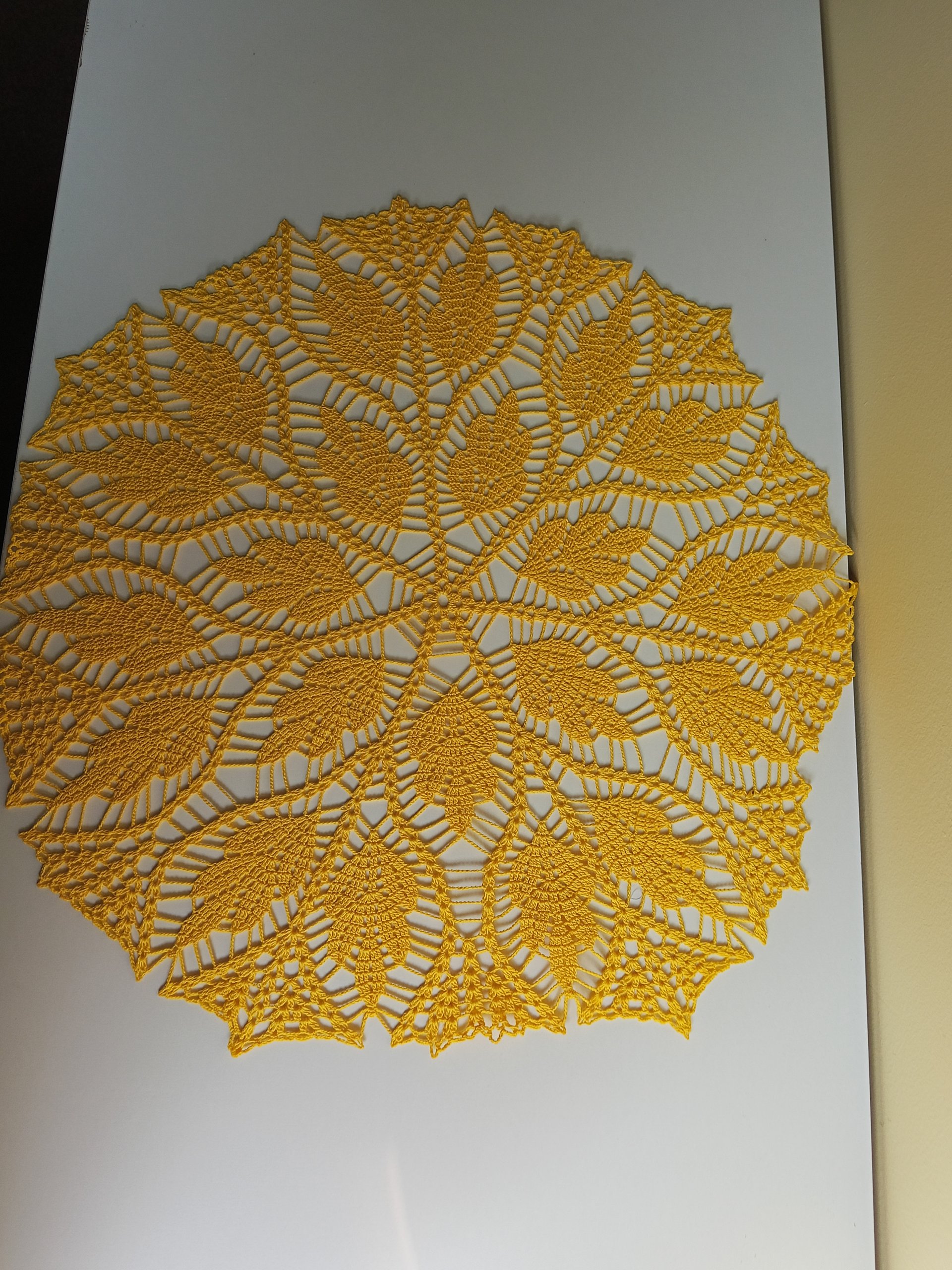 Serweta ręcznie robiona na szydełku z koronką bawełnianego o średnicy 55 cm.
