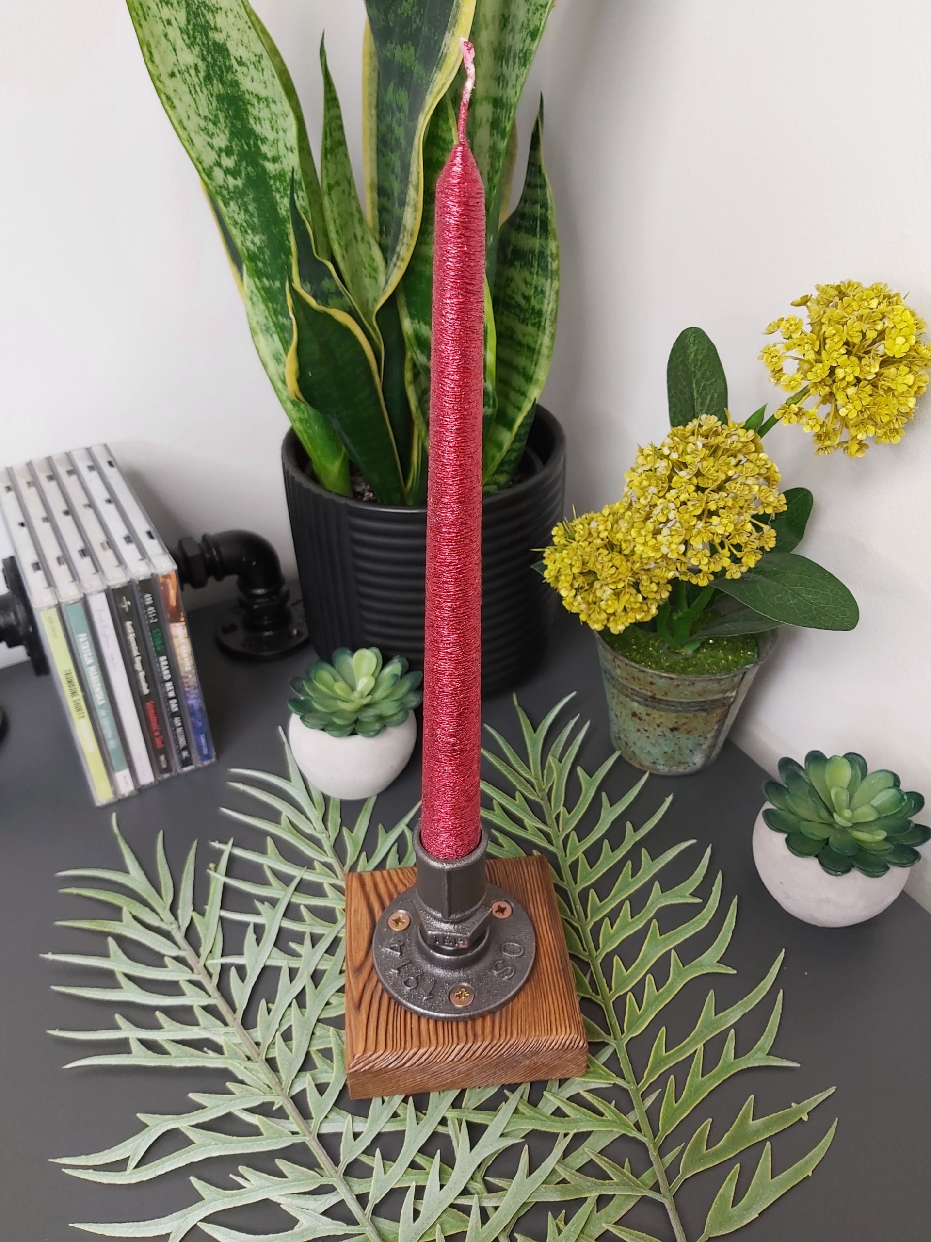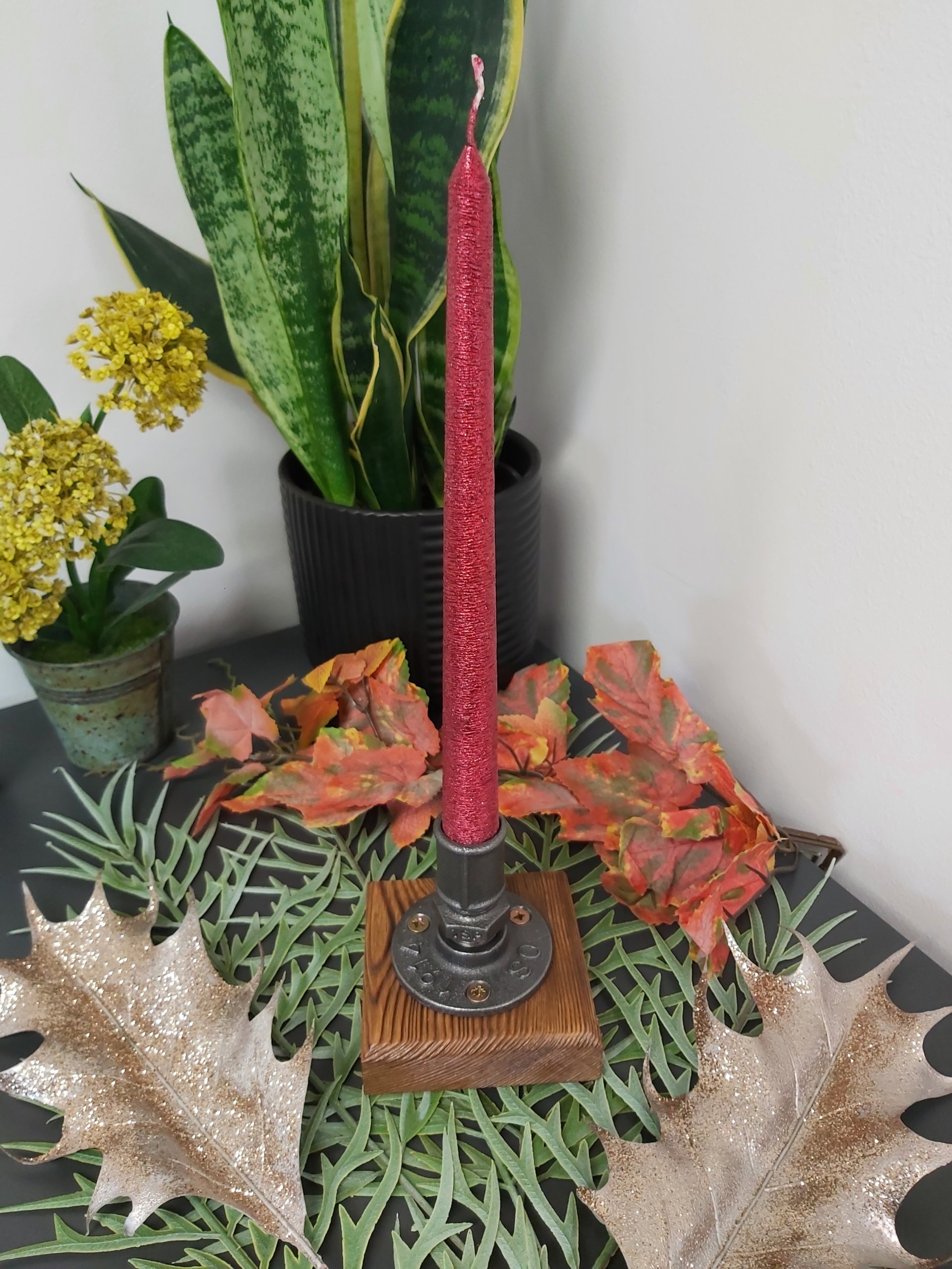 Świecznik loftowy – rękodzieło | dekoracja industrialna / loft typ: F001_1-W1