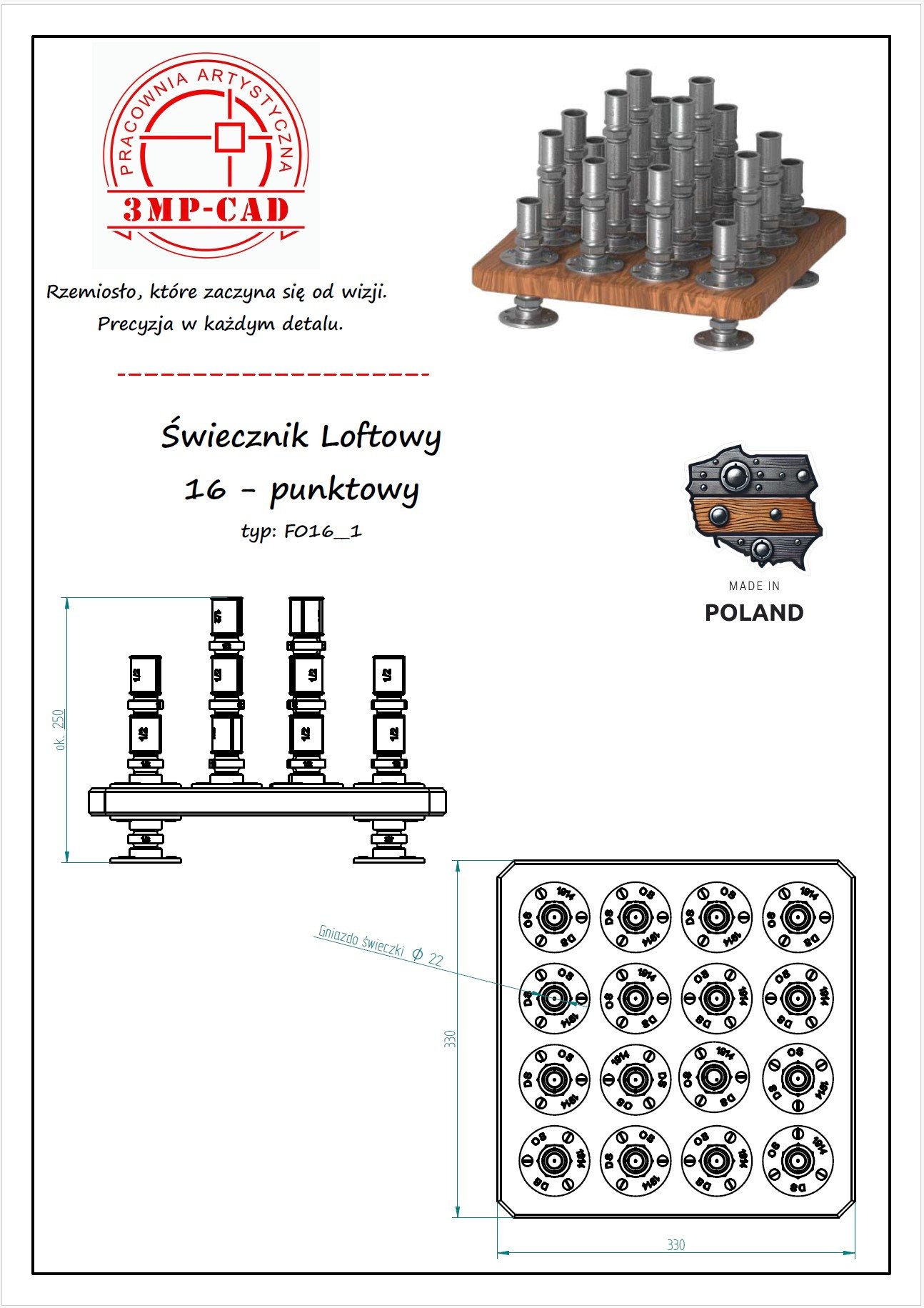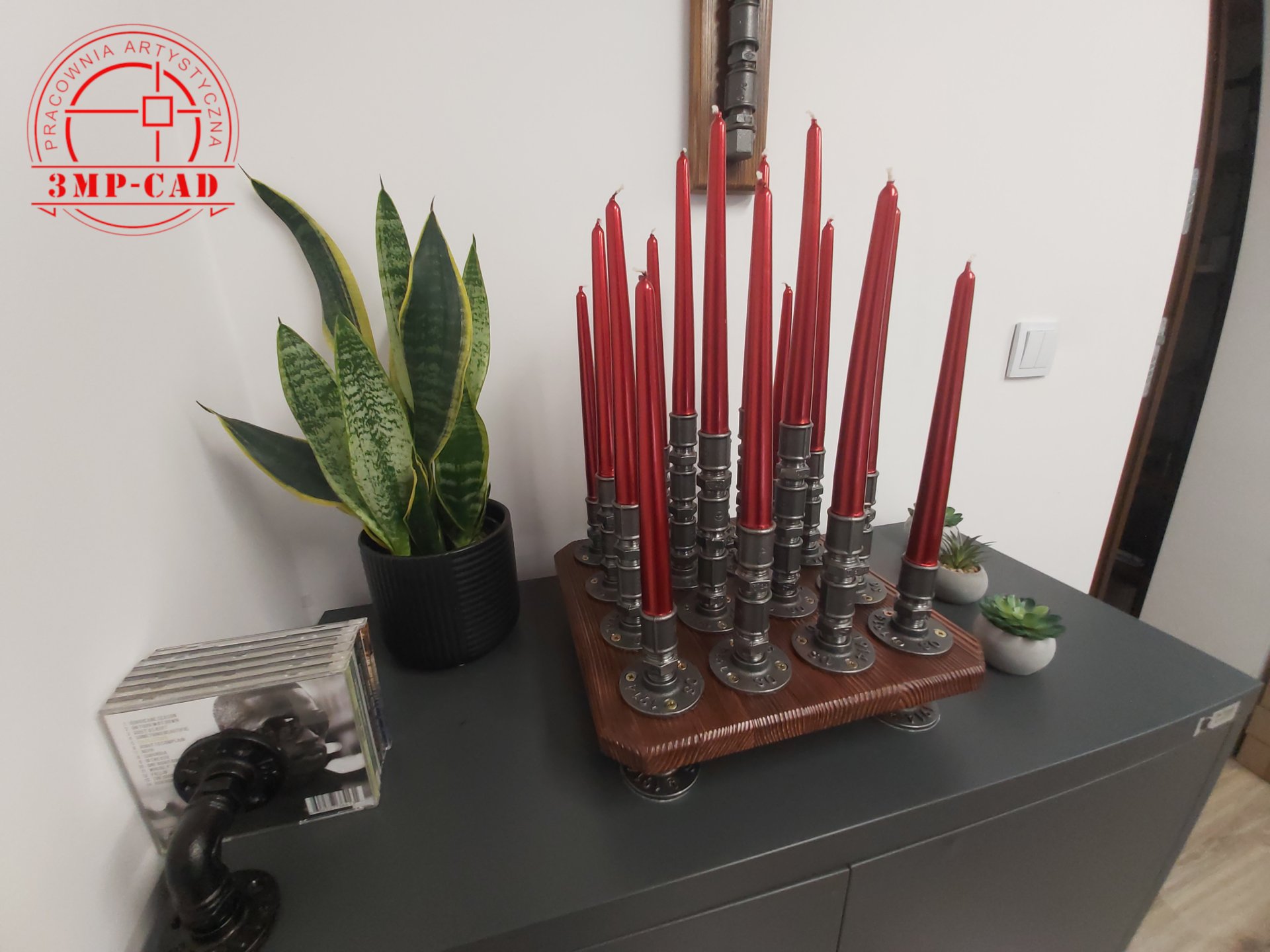 - Świecznik loftowy 16-punktowy to najbardziej rozbudowana i efektowna propozycja z Pracowni 3MP-CAD. Dzięki większej liczbie punktów świetlnych tworzy wyjątkowy klimat i staje się dominującym elementem dekoracyjnym wnętrza.