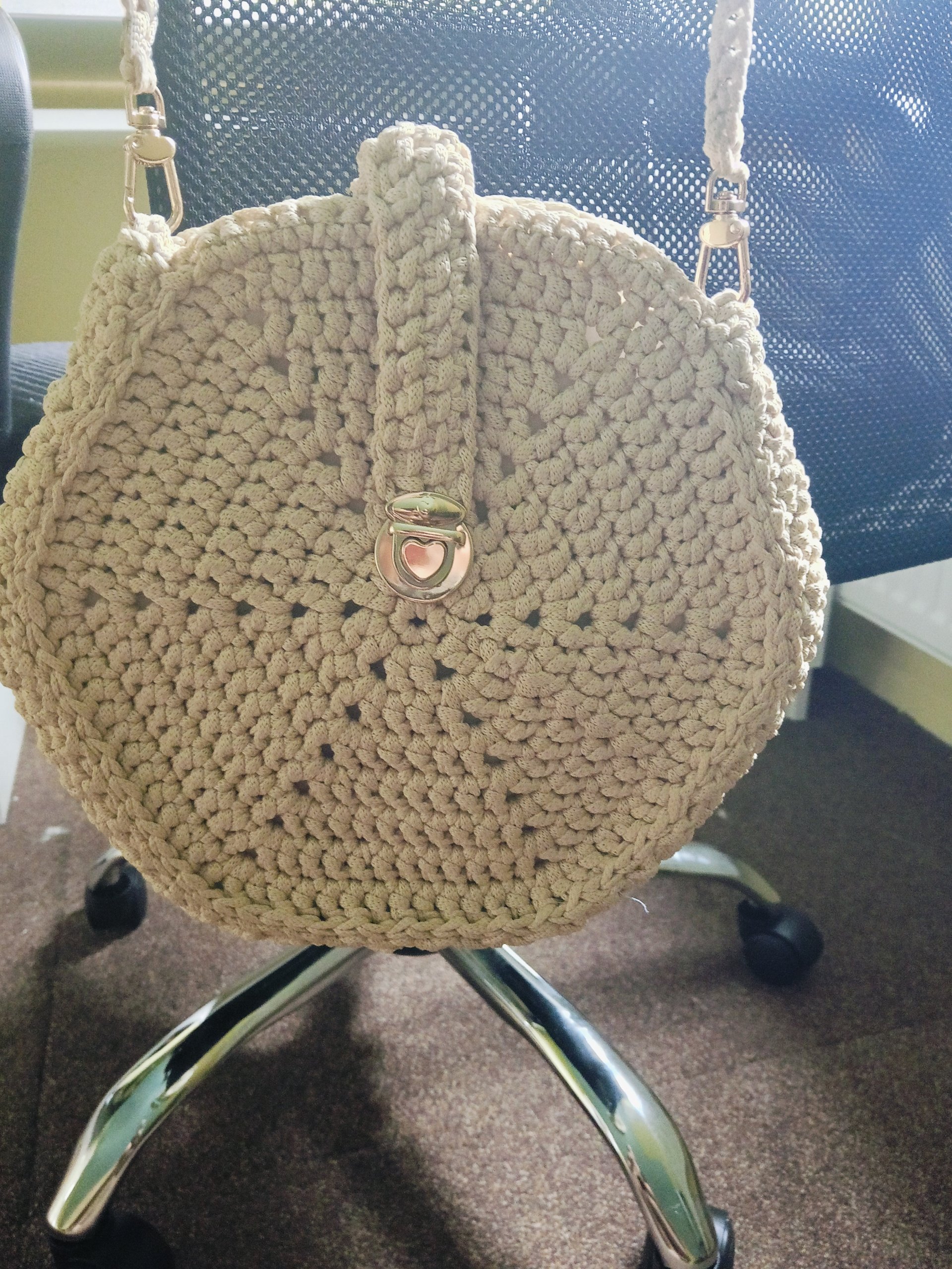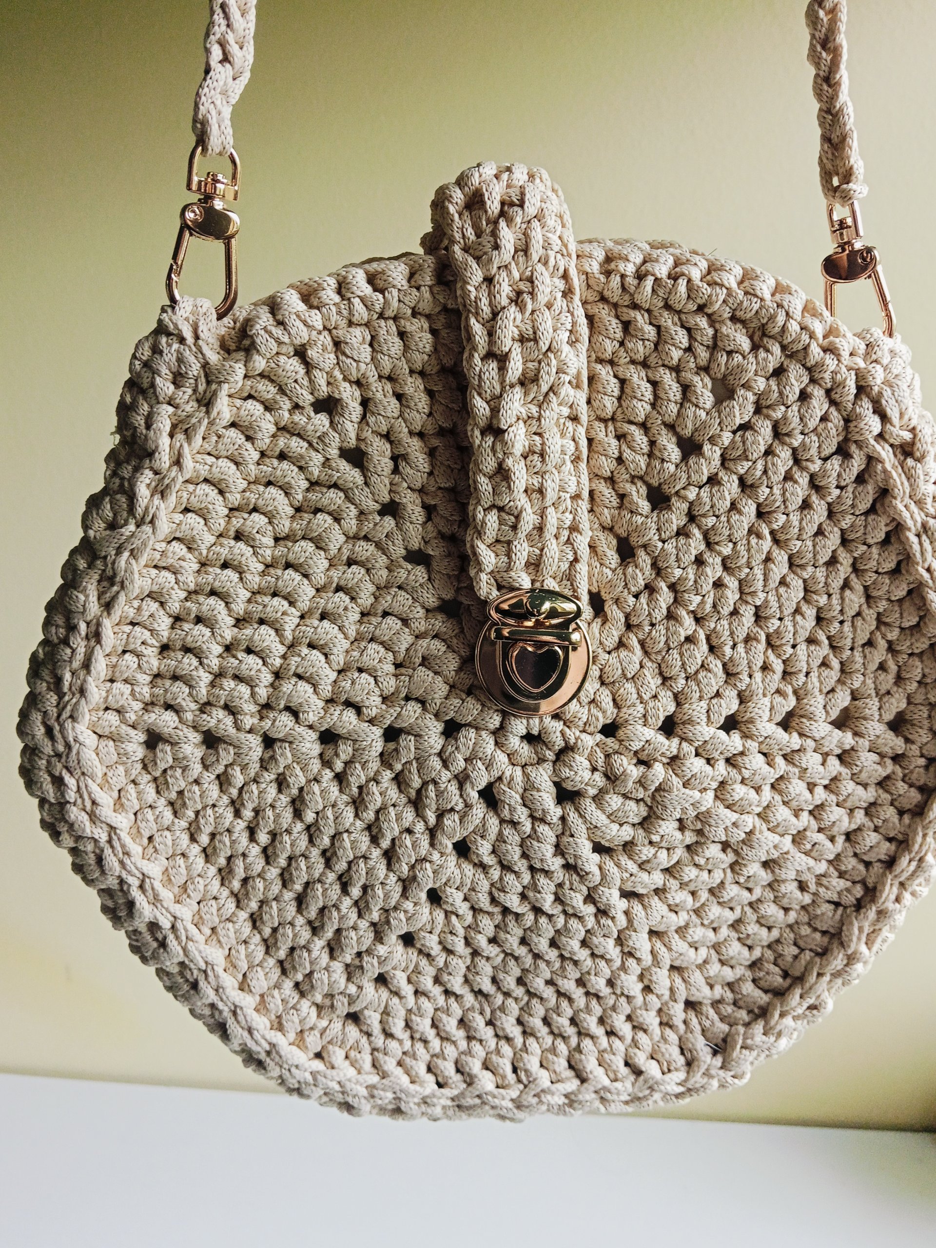 Zapraszam do zakupu ręcznie robionej torebki. Torebka w kolorze ecru, w kształcie sześcianu co daje jej niepowtarzalność i wyjątkowość. Torebka wykonana ze sznurka poliestrowego dzięki czemu jest lekka i łatwa w czyszczeniu, praniu.