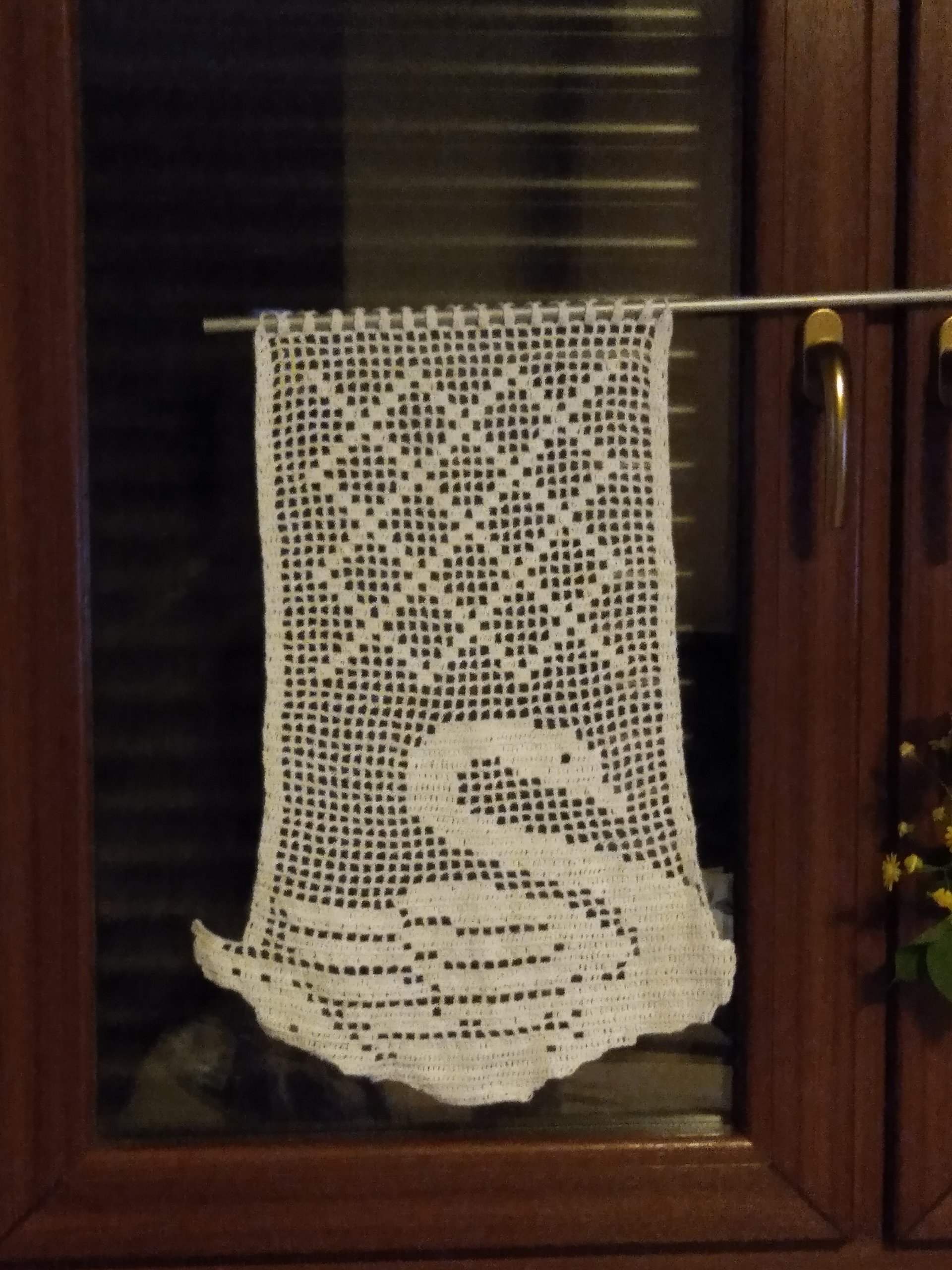 Wyrób szydełkowy z kordonka Maxi - 100% bawełna. Gotowy wyrób producent zaleca prać w temp. max. 60 stopni, max temp. prasowania 120 stopni.
